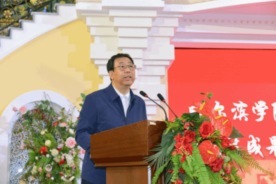 于成学在致辞中指出,当前科技创新已成为推动经济社会发展的核心动力,科技成果转化则是连接科技创新与产业发展的关键桥梁。当前,哈尔滨高度重视科技成果转化工作,出台了多项政策措施,为高校开展科研工作和成果转化提供了广阔的空间和难得的机遇。他表示,哈尔滨学院作为地方高校,肩负着为区域经济社会发展培养人才、提供智力支持的重要使命。学校将继续坚持“四个面向”,以深化改革为动力,以市场需求为导向,加强产学研合作,推动更多科技成果转化为现实生产力。将进一步加强与行业龙头企业、重大应用工程、重点产业链的合作,联合开展科研攻关,突破一批关键核心技术,为产业发展提供技术支撑。