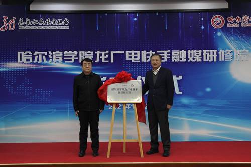 哈尔滨学院校长于成学、黑龙江广播电视台总编辑李皎共同揭牌