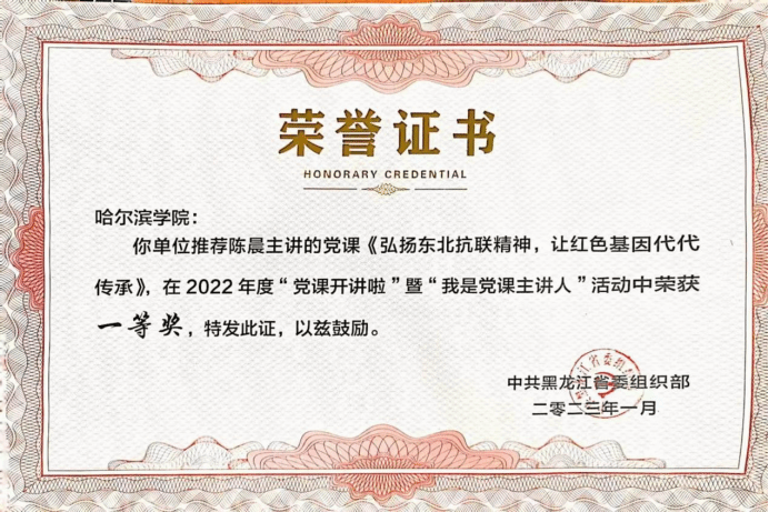 (文/刘瑶)近日,由中共黑龙江省委组织部主办,黑龙江广播电视台承办的2022年度全省“党课开讲啦”活动暨党员教育电视片观摩交流会在黑龙江广播电视台举行,哈尔滨学院纪委书记马弘莉出席活动并代表学校领奖。