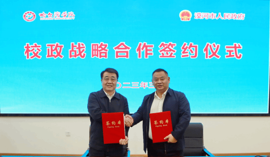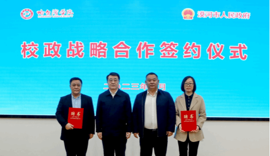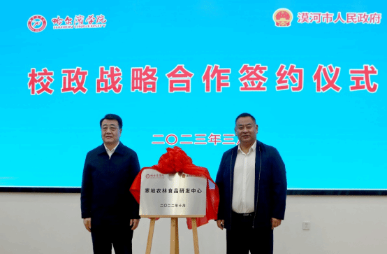 (文/欧阳乐)3月23日上午,哈尔滨学院、漠河市政府校政战略合作签约仪式在党政办公楼四楼大会议室举行。校长、党委副书记于成学,漠河市委副书记、市长邢雪松,漠河市农业农村局党组书记、局长王国欣出席仪式,学校相关职能部门负责人、食品工程学院班子成员和教师代表参加仪式。签约仪式由副校长宋国利主持。