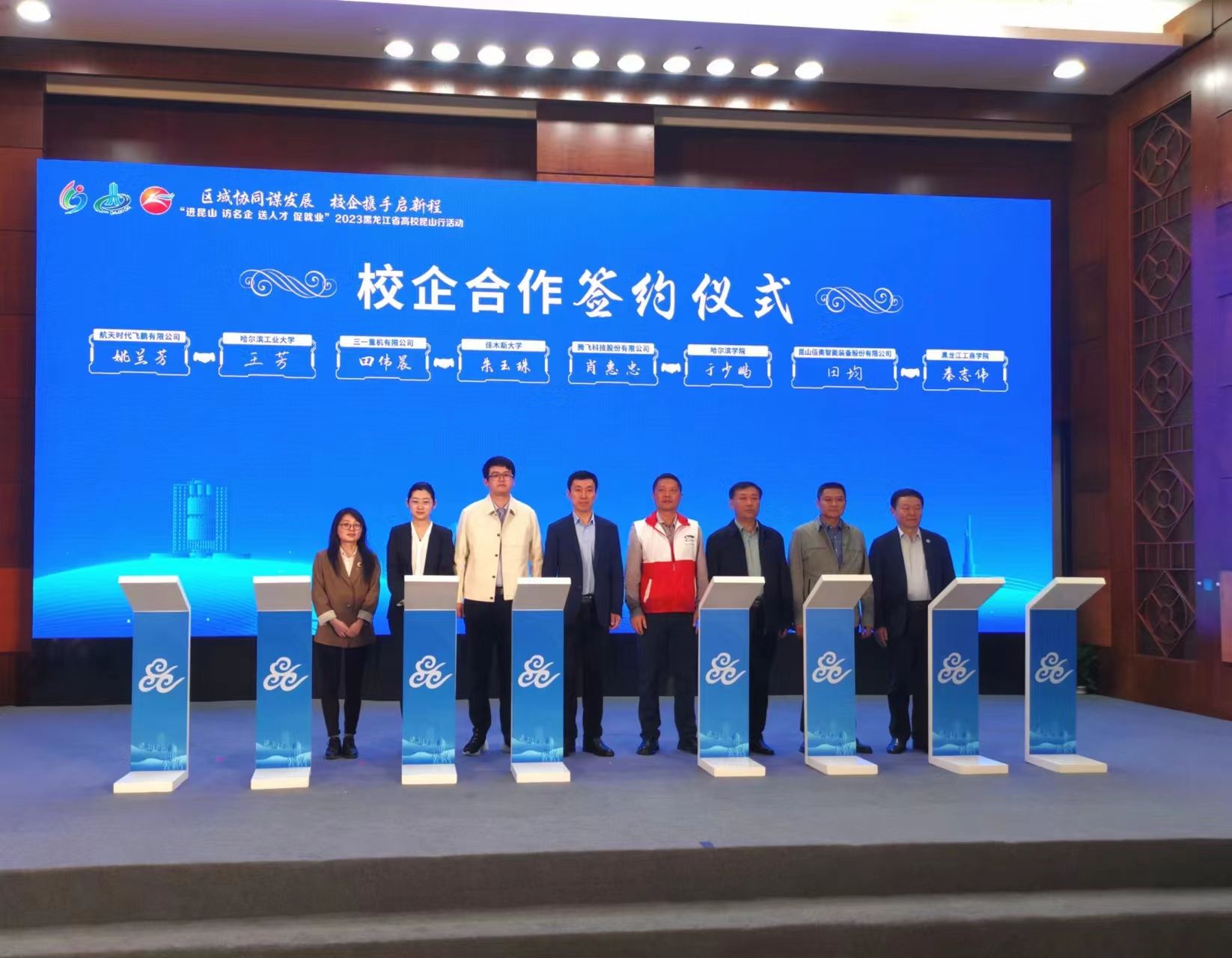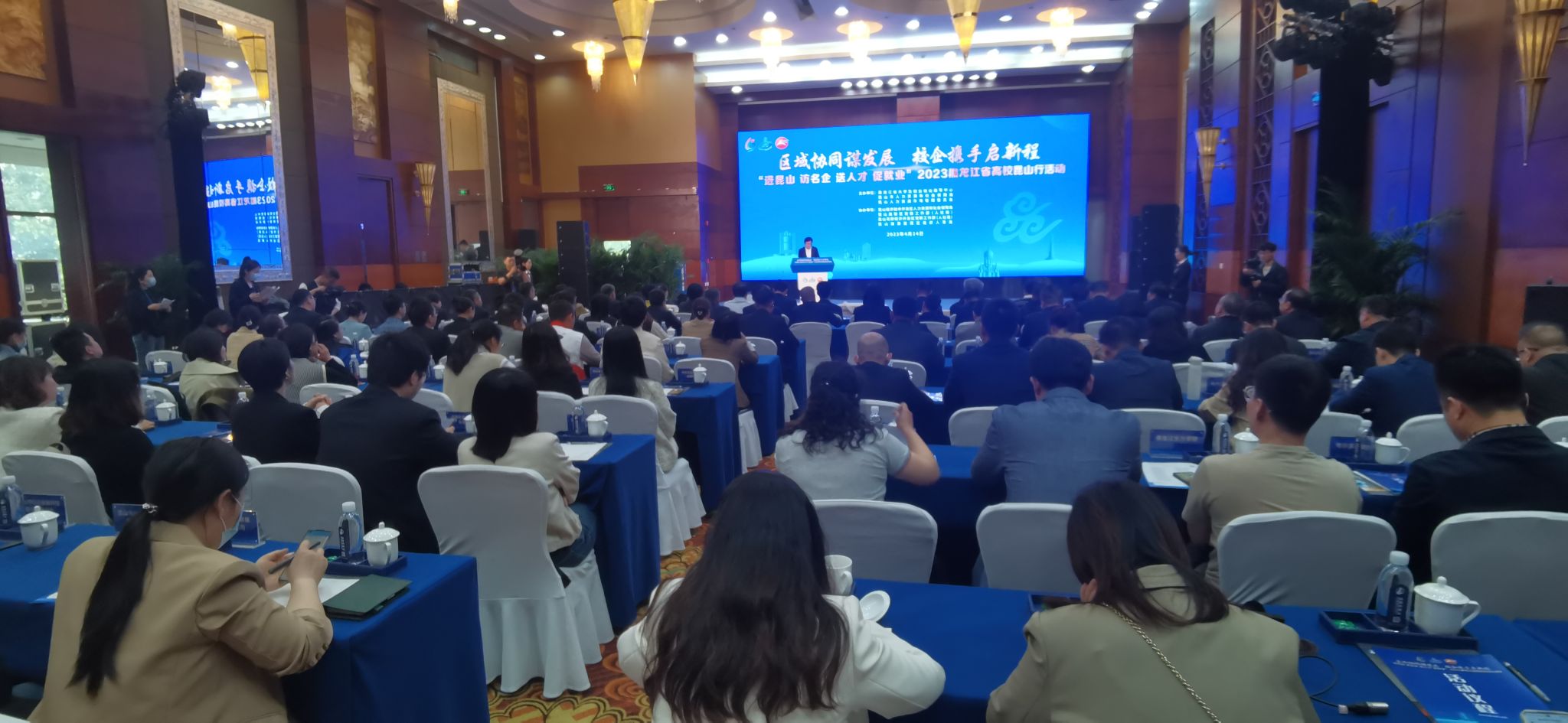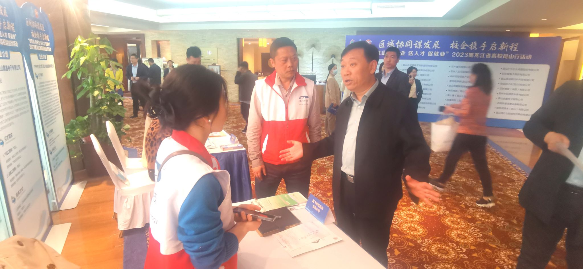 (文/孙阳)4月14日至15日,黑龙江省大学生就业创业指导中心联合昆山市人社局、昆山人力资源市场管委会举办“进昆山 访名企 送人才 促就业”2023黑龙江省高校昆山行活动。黑龙江省教育厅副厅长、党组成员,省委教育工委副书记解宗军、昆山市副市长钱许东出席活动并讲话。黑龙江省内25所高校代表、毕业生代表、校友代表、40家昆山重点企业代表参加活动。我校副校长于少鹏代表学校应邀参加本次活动,并以此为契机,带队到活动现场进行访企拓岗,为毕业生投递简历,全力促进我校毕业生顺利就业,尽早就业。