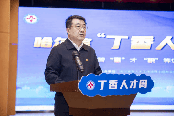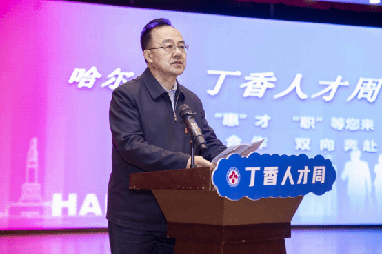 (文/孙阳)4月18日上午,哈尔滨“丁香人才周”—哈尔滨学院专场推介双选会在我校丁香剧场成功举办。哈尔滨市市委组织部副部长郭世军,哈尔滨市教育局党组书记、局长何泉,哈尔滨市委教育工委专职副书记张国明,哈尔滨市人力资源和社会保障局人力资源服务中心主任杜忠家,我校校长、党委副书记于成学出席活动。香坊区、五常市、依兰县相关工作负责同志,学校就业部门负责同志,各学院2023届毕业班辅导员老师及2023届毕业生代表参加会议。会议由副校长于少鹏主持。