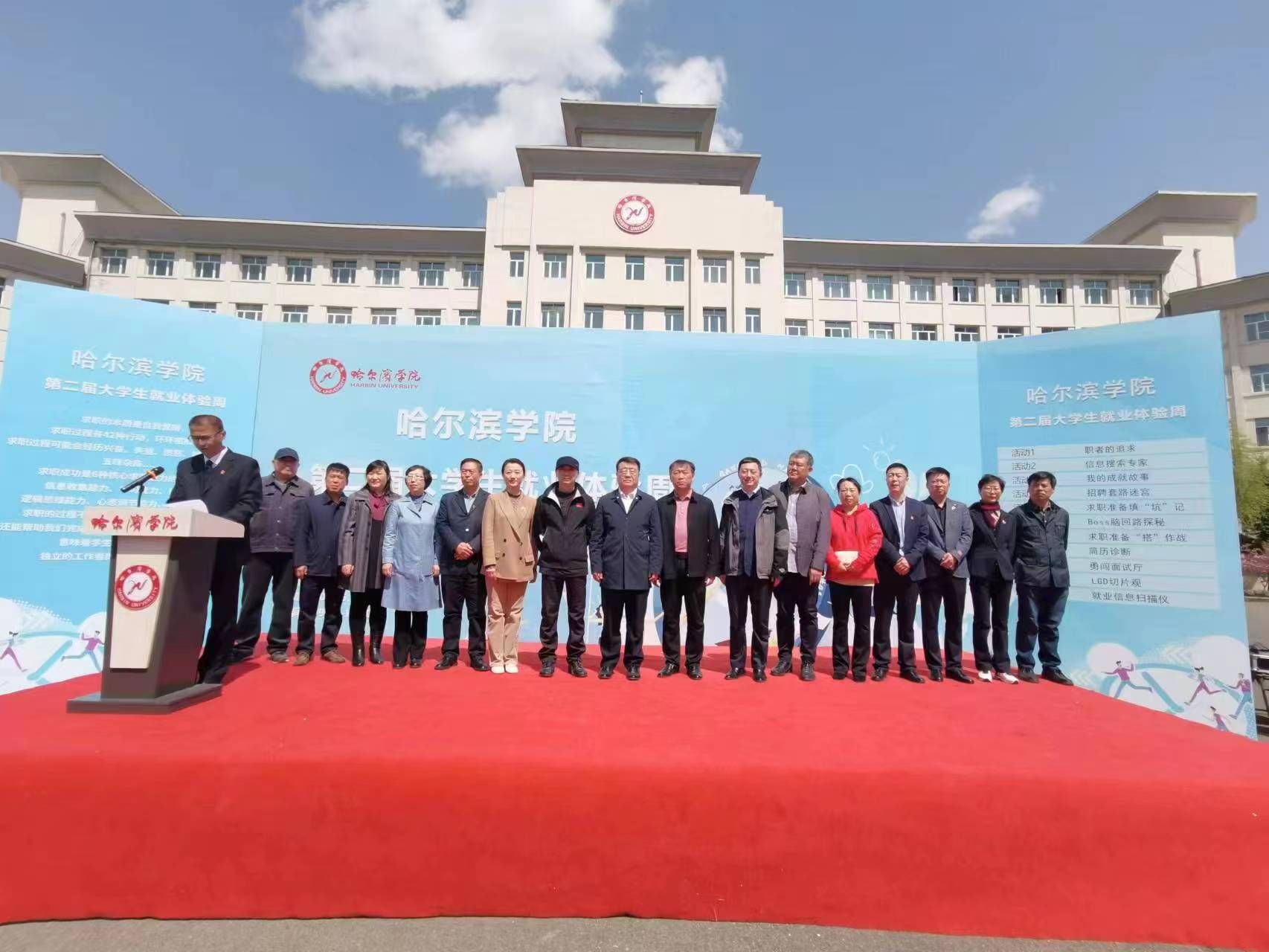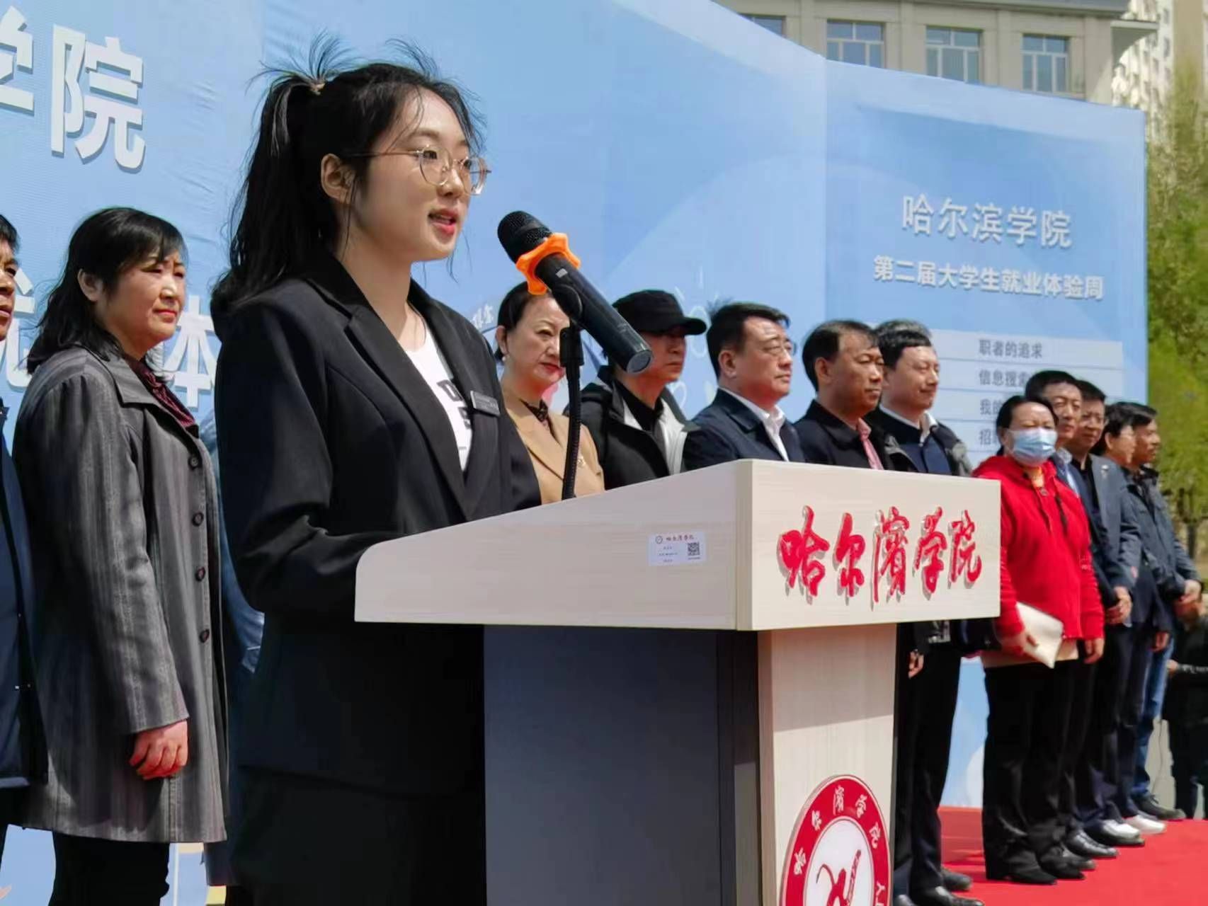 于成学在讲话中指出,就业是最大的民生,以习近平同志为核心的党中央始终坚持就业优先战略和积极就业政策,把高校毕业生就业工作摆在突出位置,多措并举促进毕业生更高质量和更充分就业。省委省政府、市委市政府、省委教育工委、教育厅将就业工作纳入重要日程,扎实推进高校毕业生就业工作,特别是毕业生留省留哈就业。学校党委高度重视毕业生就业,深入落实就业工作“一把手”工程,坚持统筹谋划、有序推进,以上率下,协调联动。校、院两级领导带头开展访企拓岗专项行动,主动深入企业拓展就业渠道,挖潜岗位增量,全力提升毕业生就业质量。就业指导处联合各学院,陆续组织线上线下专场招聘会73场,邀请各市地人才中心来校举办招聘会16场,累计进校用人单位1万余家,累计提供就业岗位15万余个,为毕业生提供了数量充足的就业岗位,有力地促进2023届毕业生充分就业。这次就业体验周活动,既是一次创新开展就业工作的有益举措,也是一次提升学生就业能力的实践锻炼。希望同学们能够积极参与,进一步认识未来职业世界、形成创新思维模式、了解自身职业定位、磨炼求职技能技巧,不断加强职业生涯规划,提升就业创业能力,做到志存高远、脚踏实地,不畏艰难险阻、勇担时代使命,真正把个人的理想追求融入国家发展和龙江振兴当中,努力为全面建设社会主义现代化国家和龙江全面振兴、全方位振兴做出新时代哈院人新的更大贡献。