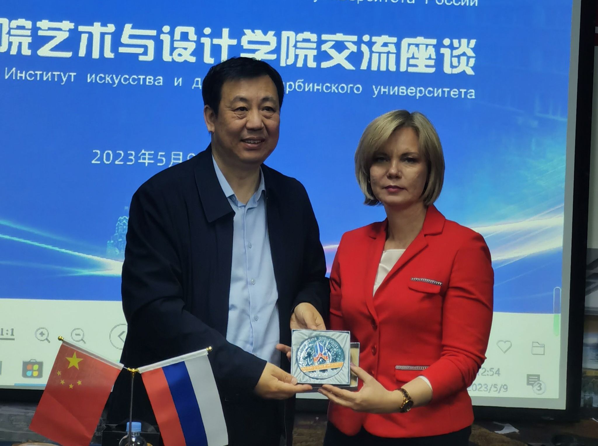 罗伊巴·娜塔莉亚女士详细介绍了阿穆尔国立大学的专业设置、师资队伍、与中国院校交流合作等情况,并诚挚邀请我校参加明年4月在阿穆尔国立大学举办的国际艺术节。她表示,双方在人才培养、文化交流等领域有着良好的合作基础和广阔的合作空间,希望双方加强多元合作,携手共赢发展,共创美好未来。