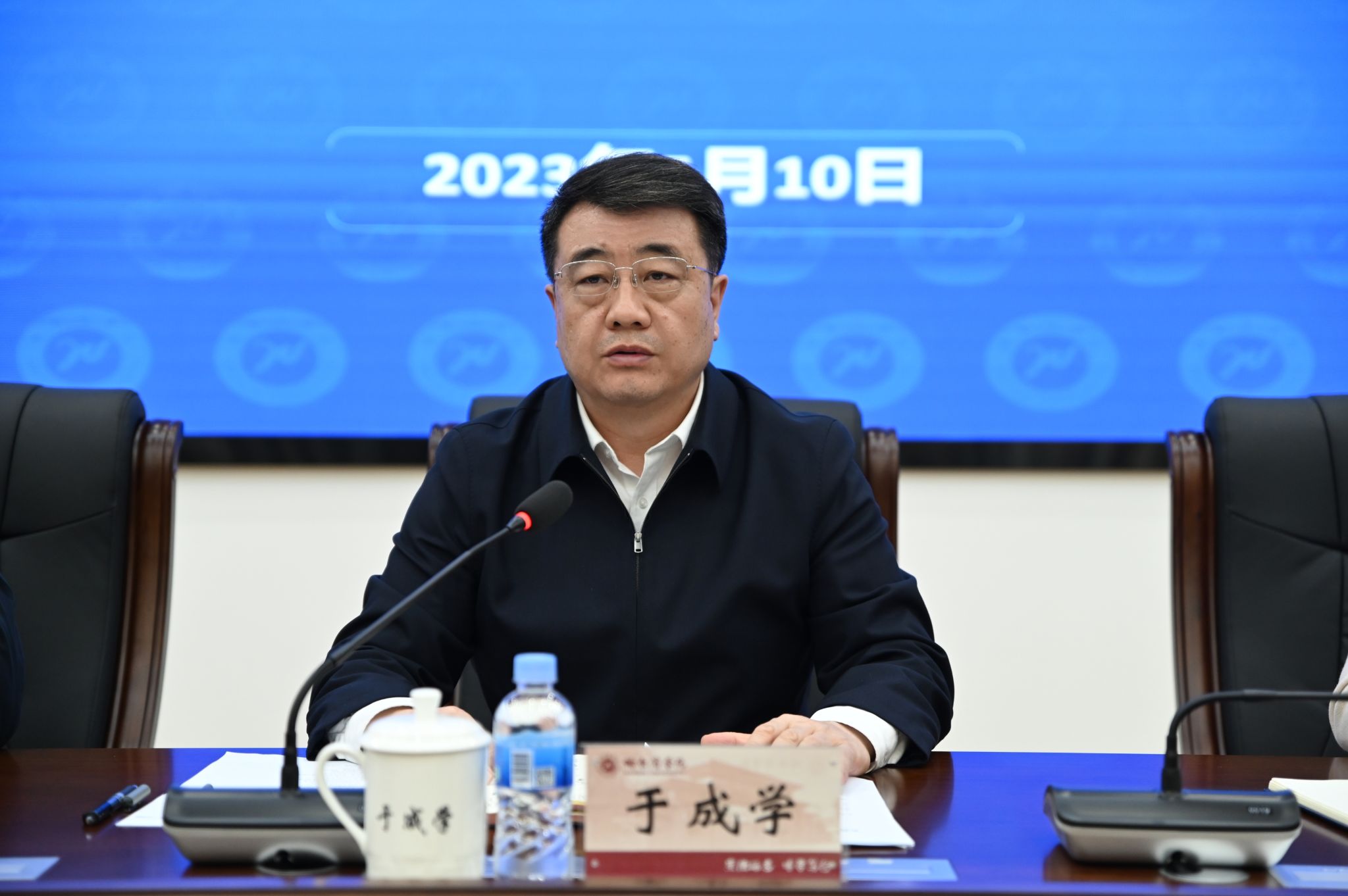 于成学强调,第二十三届田径运动会是后疫情时代首场校级体育赛事,学校高度重视此次田径运动会的举办,以本届田径运动会为契机,进一步推进体育育人的理念,提高全校师生对体育的认识至关重要,希望全校共同努力、增强责任感和使命感,把本次运动会办成一届具有学校特色、彰显时代风采的体育盛会。针对本次运动会的筹备工作,他提出六点要求:一是统一思想,提高认识。本届运动会是在党委领导下,各工会组织积极参与的一次重要体育赛事,是教育教学的一部分,也是人才培养的重要环节,更是课堂教学的延伸和拓展。各单位(部门)要高度重视,加强领导,认真履行岗位职责,将本届运动会开成团结鼓劲、勤俭节约、展示精神风貌的大会。二是立即行动,全员参与。党员干部带头,各教职工积极参与,将学校的教育教学、科学研究、人才培养、社会服务、校园文化建设、办学成果等工作通过本届运动会充分的展示出来。三是精心组织,提振精神。要通过层层动员,充分发挥每个师生的主人翁作用,牢牢树立以学生为本,健康第一的理念,师生齐参与,增强师生间感情,提升师生精气神。四是营造氛围,体现竞争。要加强对体育工作及运动会宣传工作,广泛动员师生应用新媒体,对运动会进行全方位多角度宣传报道,引导更多师生关注体育,积极参加体育运动,不断提升体育育人成效。五是完善预案,确保安全。要高度重视安全事项,坚持安全第一原则,后疫情时代防控不松懈,密切关注师生的身体状况,完善好各类工作、保障预案,确保运动会安全、顺利举办。六是加强领导,统筹兼顾。本次会议是目前建校以来规格最高的筹备会,体现了学校党委和行政的高度重视,在做好本届运动会工作的同时,更要通过运动会这个窗口,统筹兼顾,促进主题教育、工作落实年、学科专业建设、申硕工作、创新团队建设、课程建设等相关重点工作有条不紊地开展。