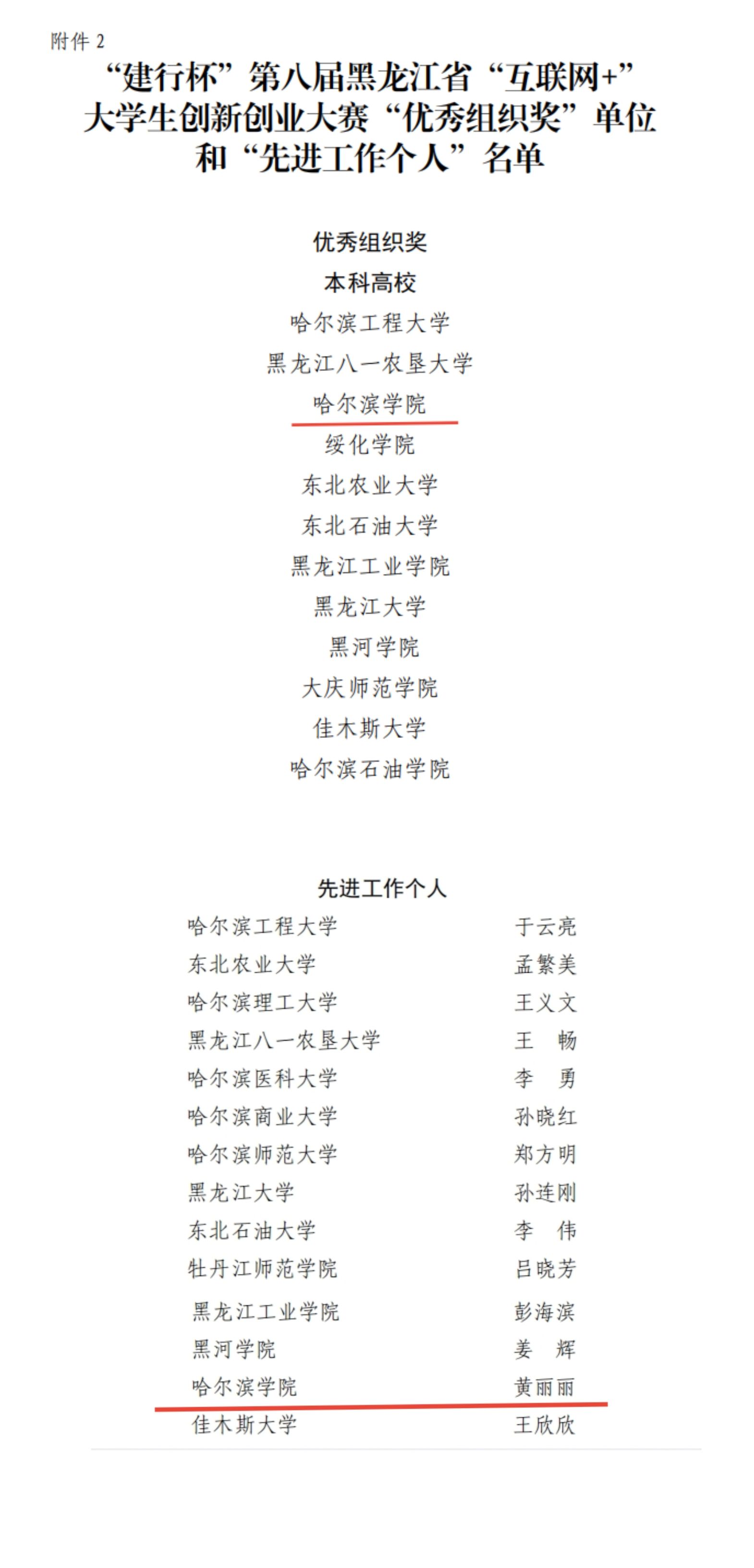 附件:黑龙江省教育厅关于表彰第八届黑龙江省“互联网+”大学生创新创业大赛获奖集体和个人的决定