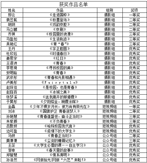 在此次比赛当中,我校网新专业共计31名学生在比赛中取得佳绩!其中,摄影组19人获奖,一等奖1名、二等奖3名、三等奖3名、优秀奖12名;短视频组6人获奖,一等奖1名、二等奖1名、三等奖2名、优秀奖2名;公众号组6人获奖,二等奖1名、三等奖1名、优秀奖4名。