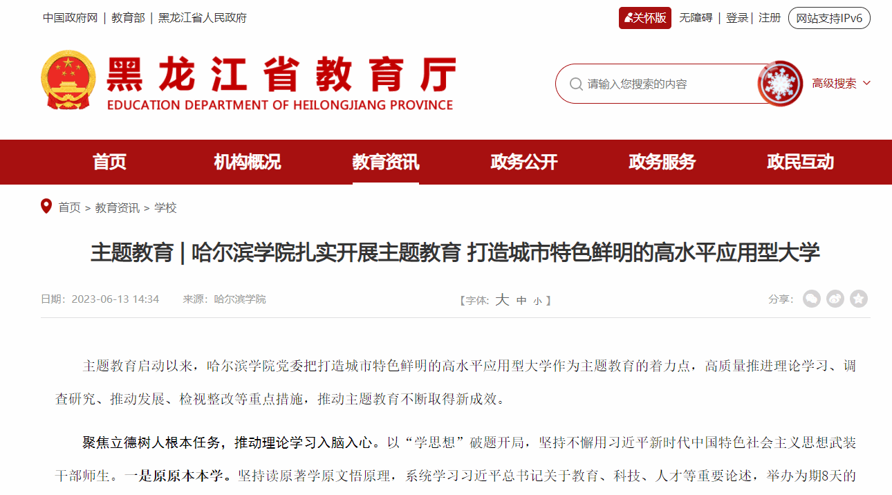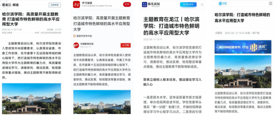 (文/常征)近日,黑龙江省教育厅官网、新华社黑龙江频道、学习强国、中国教育在线、极光新闻、冰城+等主流媒体刊发报道我校主题教育开展情况,充分展示我校主题教育启动以来取得的阶段性成果。
