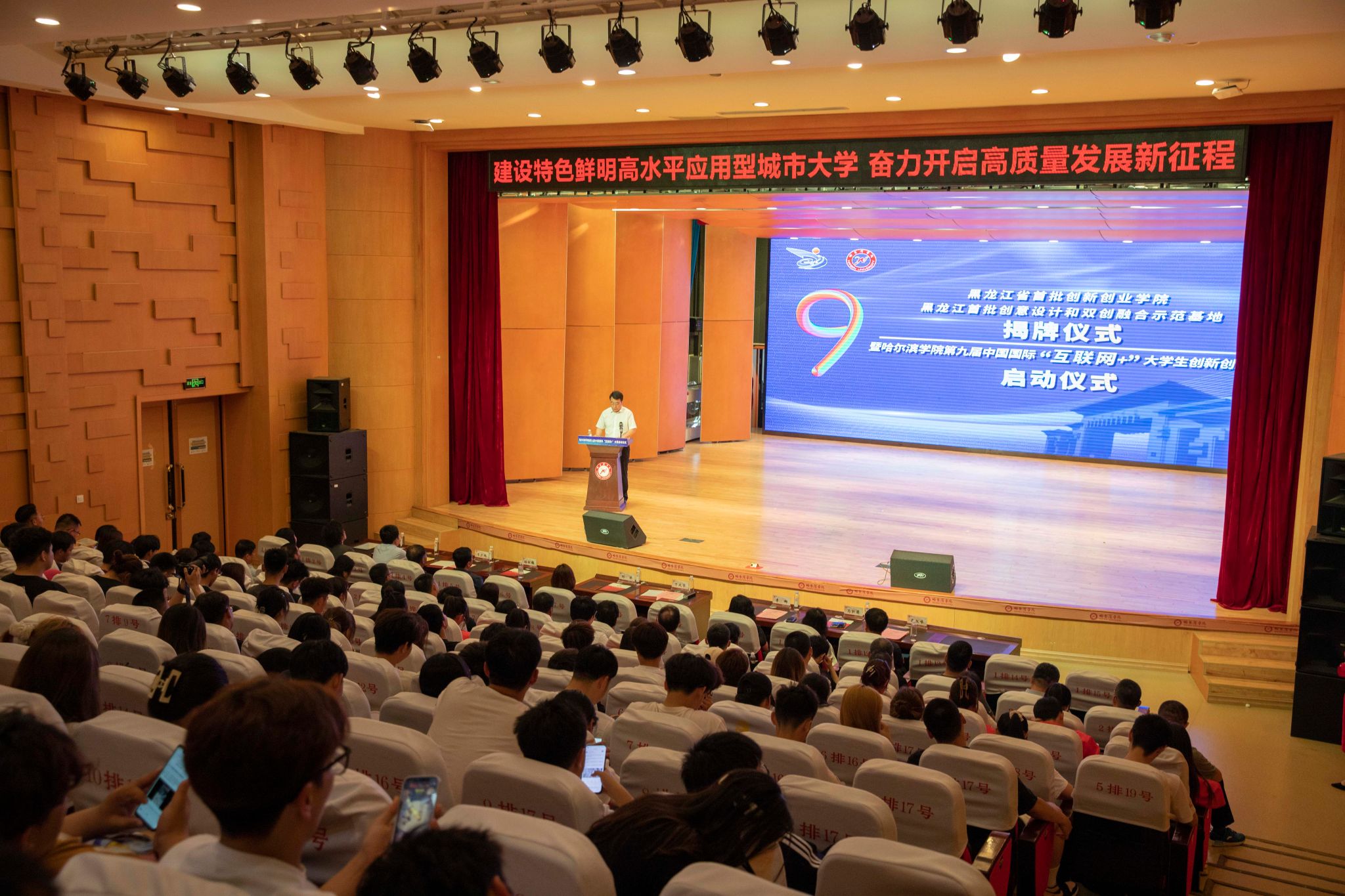(文/李健)6月19日下午,黑龙江省首批创新创业学院和首批创意设计与双创融合示范基地揭牌仪式暨哈尔滨学院第九届中国国际 “互联网+”大赛启动仪式在音乐与舞蹈学院小音乐厅举行。校长、党委副书记于成学出席活动并讲话,党委副书记李娜,副校长孙红镱、纪委书记马弘莉、副校长于少鹏、副校长吴旭峰出席活动。黑龙江省教育厅高教处双创教育负责人刘洋博士到会祝贺。学校相关职能部门负责人,各二级学院领导、创业导师及学生代表共220人参加活动。启动仪式由副校长宋国利主持。