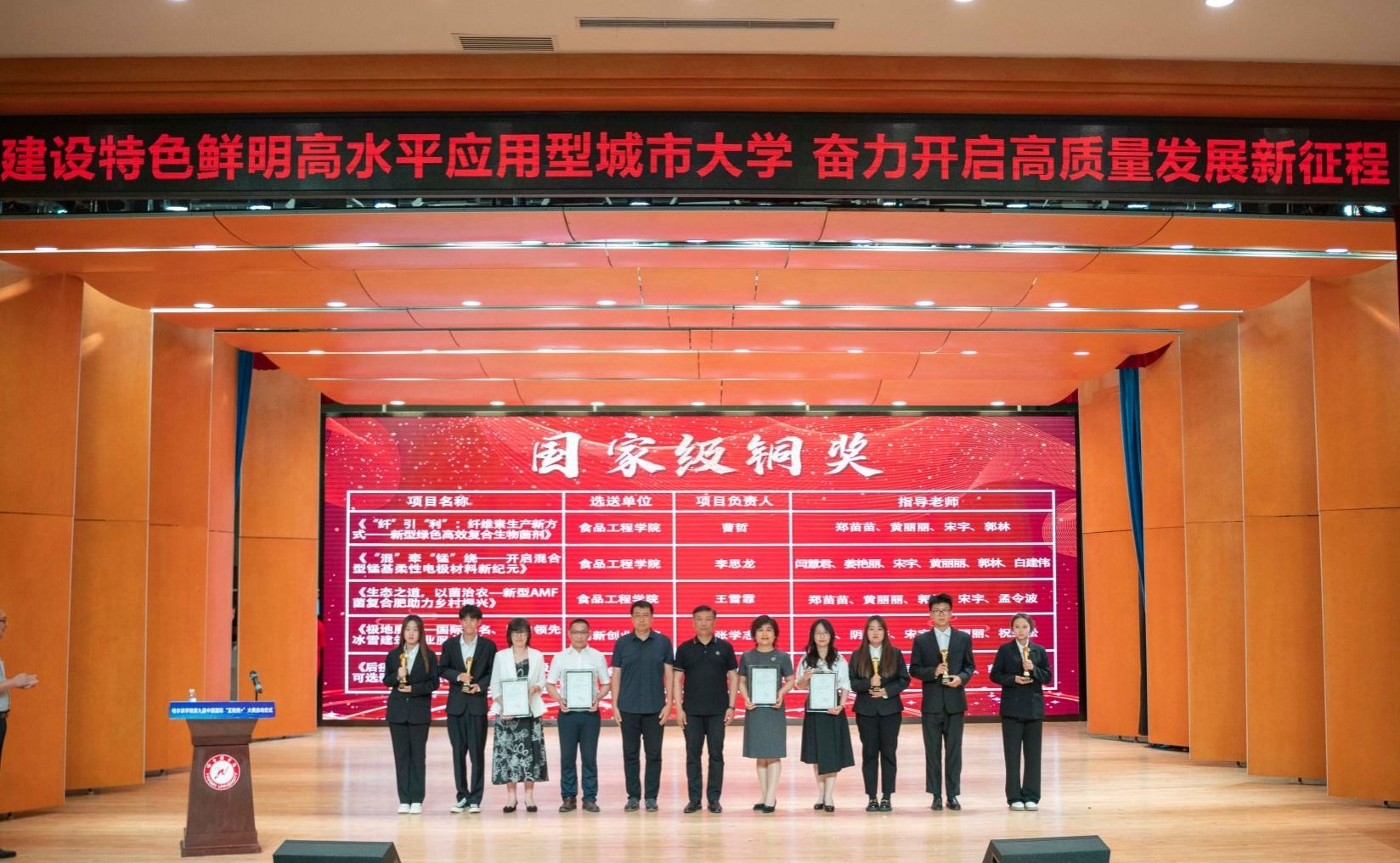副校长于少鹏、副校长吴旭峰为第八届“互联网+”大赛国家级铜奖获奖团队和指导教师颁奖