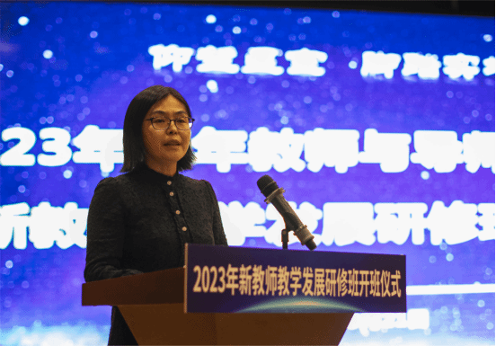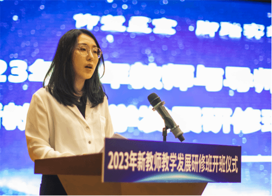 土木建筑工程学院教授贾贞代表指导教师发言。她指出,青年教师是教育事业的未来和希望,承担着传承与发展教育理念的使命,作为指导教师,深感责任重大。贾老师向新教师发出号召:一要学高身正,精通业务;二要教学相长,博采众长;三要服务发展,贡献力量。文法学院新教师佟珊珊代表青年教师发言,表达青年教师对未来工作的期待和对教育的热爱,围绕“初心”与“成就”分享了自己心得体会。她代表全体学员承诺:在本次培训和以后工作中,将充分发挥自身优势,努力弥补不足,以诚心和用心的态度,以勤学、勤听、勤思的方法努力学习,提升自我;认真参加各项研修活动,刻苦钻研业务知识,积极投身教育教学和学校建设发展中。