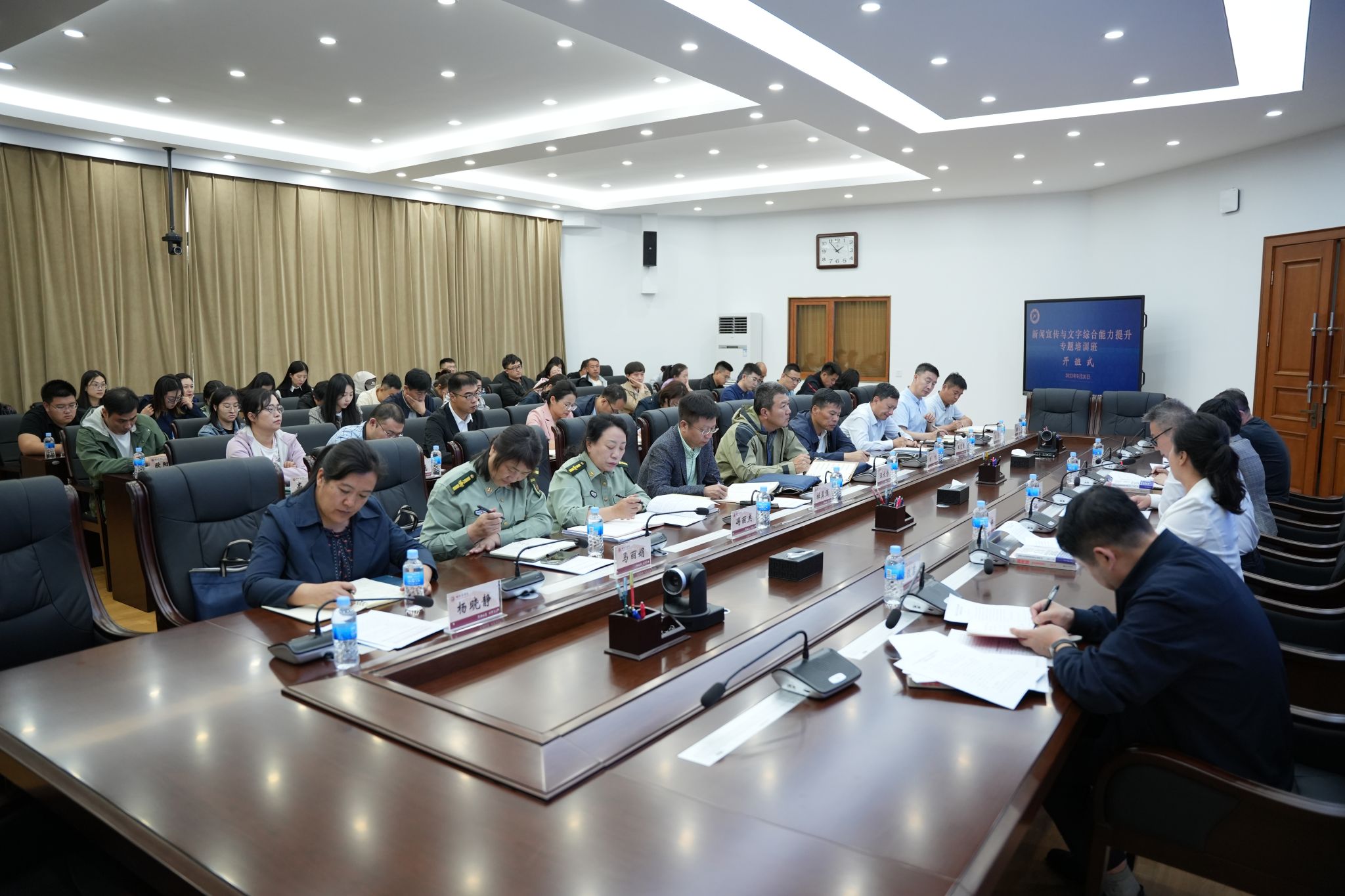 (文/邢珺)为切实提升学校宣传队伍的理论素养和业务能力,着力培养一批素质好、能力强的“笔杆子”,9月20日—21日,学校在党政办公楼404会议室举办新闻宣传与文字综合能力提升专题培训班。党委书记苍松出席培训班开班式并讲话,党委副书记李娜主持开班式并在结业式上作总结讲话。培训采取线上线下相结合的方式召开,各基层党委(党总支)书记、部分职能部门负责人和各部门(单位)宣传、文字工作骨干参加本次培训。