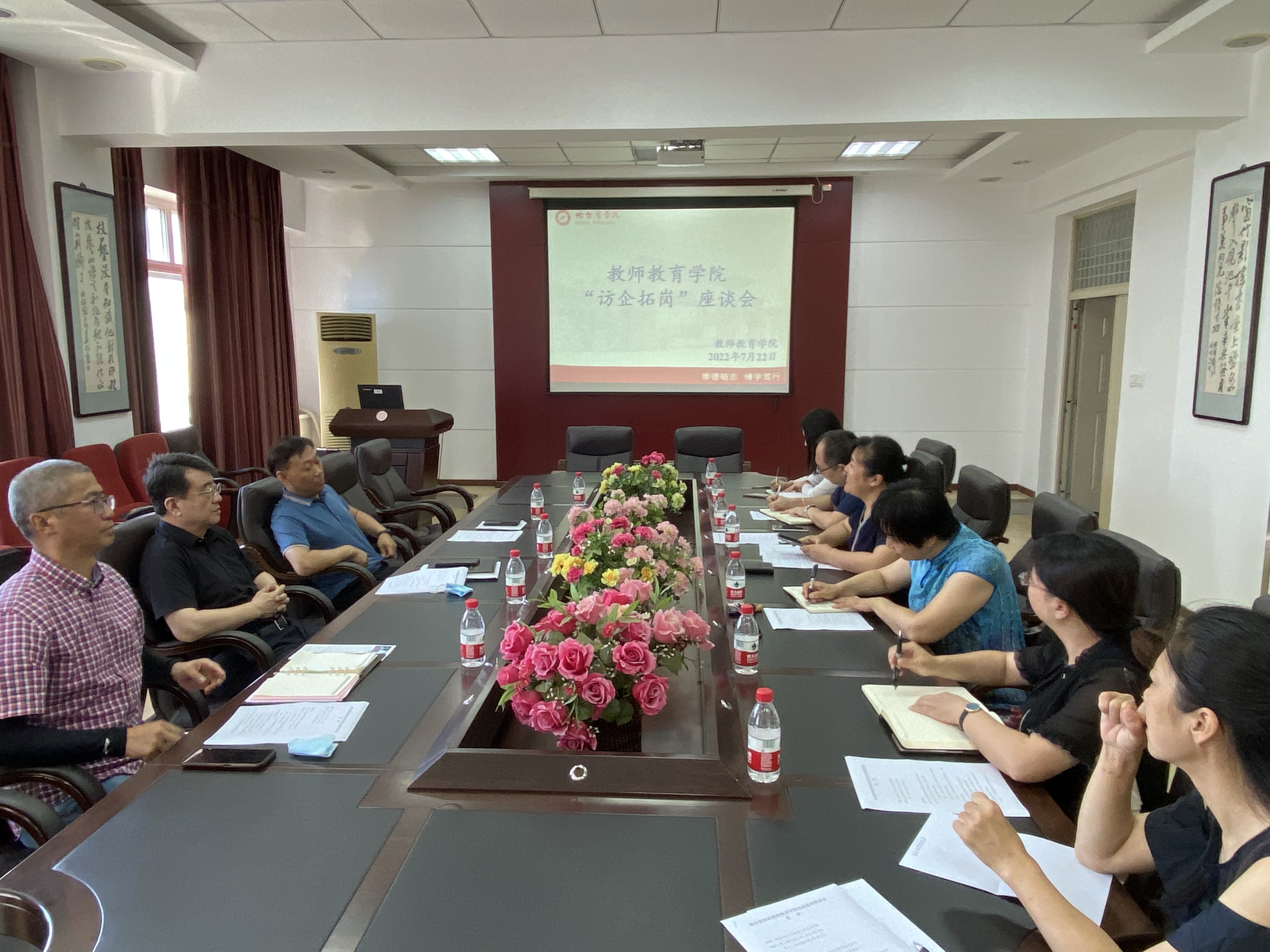 (文/孙华)为深入开展访企拓岗促就业专项活动,推进毕业生就业市场开拓工作,不断深化教育教学改革,持续提升人才培养质量,拓宽毕业生就业渠道和资源,7月22日上午教师教育学院组织召开线上线下相结合的访企拓岗座谈会。校长、党委副书记于成学,党委委员、副校长于少鹏,就业指导处处长张成强,教师教育学院领导班子、系主任、辅导员参加会议。会议邀请了湖南文津教育科技集团义务教育阶段总校长暨文郡城东学校肖勇校长、广东惠州博罗实验学校小学部教研负责人封雪老师、哈尔滨南岗区慧之海幼儿园有限公司滕洁园长、哈尔滨真爱幼幼婴幼儿照护服务有限公司依淼小熊群力园董晓健园长等四家用人单位的领导及负责人线上参会。会议由教师教育学院党委书记杨晓静主持。