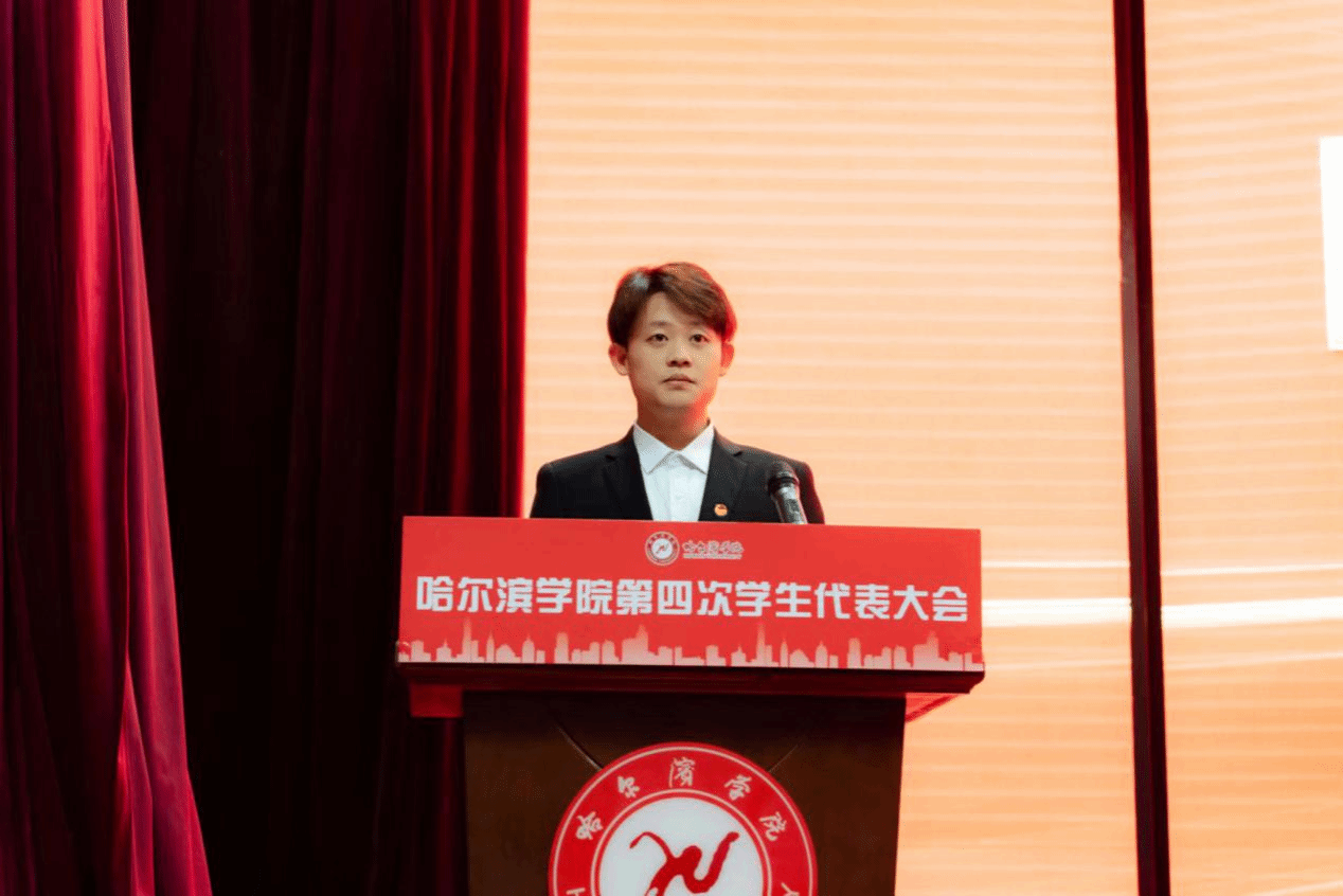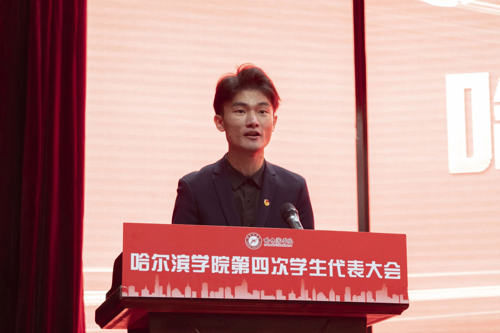 祖御恒同学代表市学联向本次学代会的召开表示热烈祝贺。他指出,哈尔滨学院学生会在学校党委和市学联的正确领导下、在学校团委的具体指导下,持续深化组织改革,不断加强自身建设,立足学校发展大计,紧紧围绕中心工作,为学校各领域事业与同学全方位发展做出了突出贡献。希望哈尔滨学院学生会能够继续团结带领哈院学子踔厉奋发,勇毅前行,汇聚青春动能,让青春在奔跑中展现最美姿态,在全面建设社会主义现代化国家的火热实践中绽放闪耀光彩。