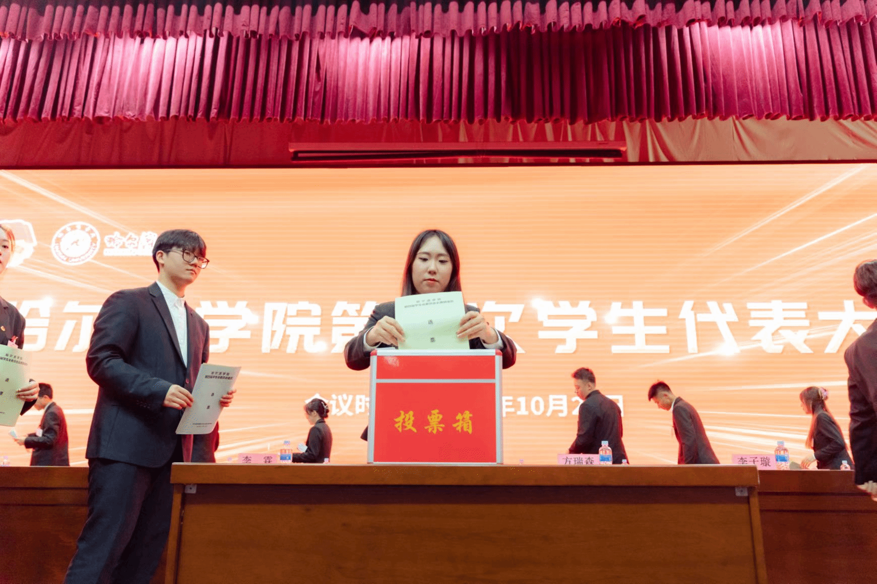 大会各代表团召开分团会议,讨论了有关工作报告。此次大会选举产生了新一届学生会主席团,审议通过了第三届学生会工作报告、学生会章程(修正案)和大会提案工作报告等,并向全校同学发出了倡议,大会在激昂的《哈尔滨学院校歌》中圆满落幕。