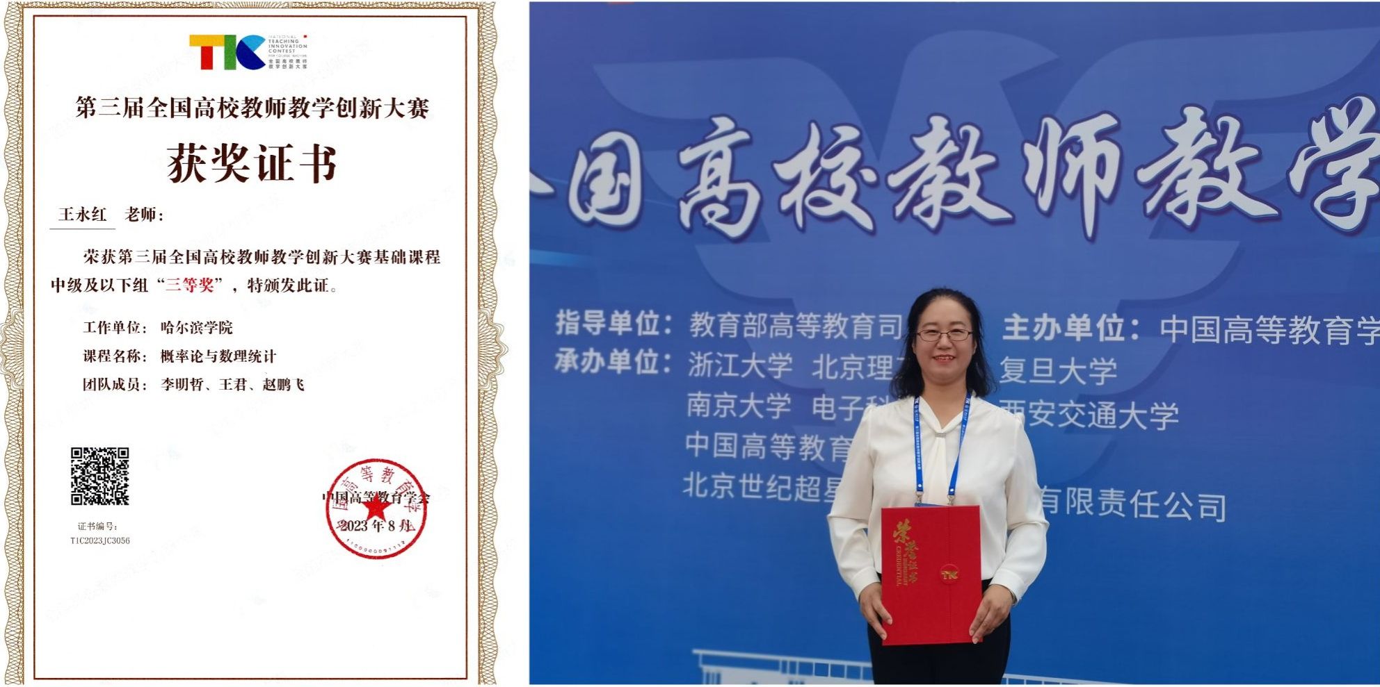 教师王永红获第三届全国高校教师教学创新大赛三等奖