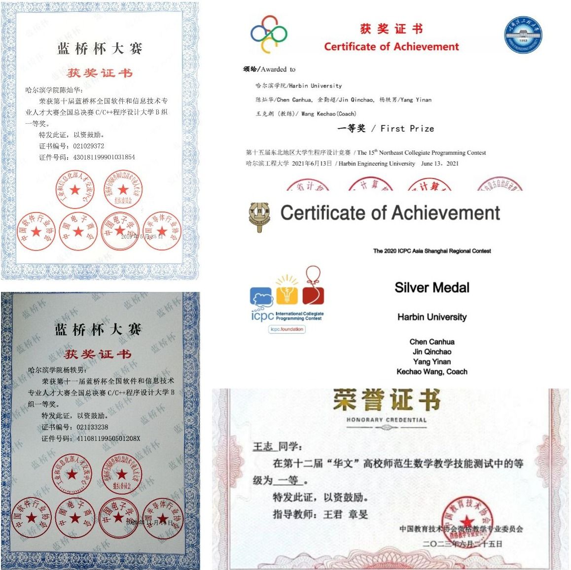 学院学生获得国际、国家级程序设计、教学技能比赛一等奖(部分证书)