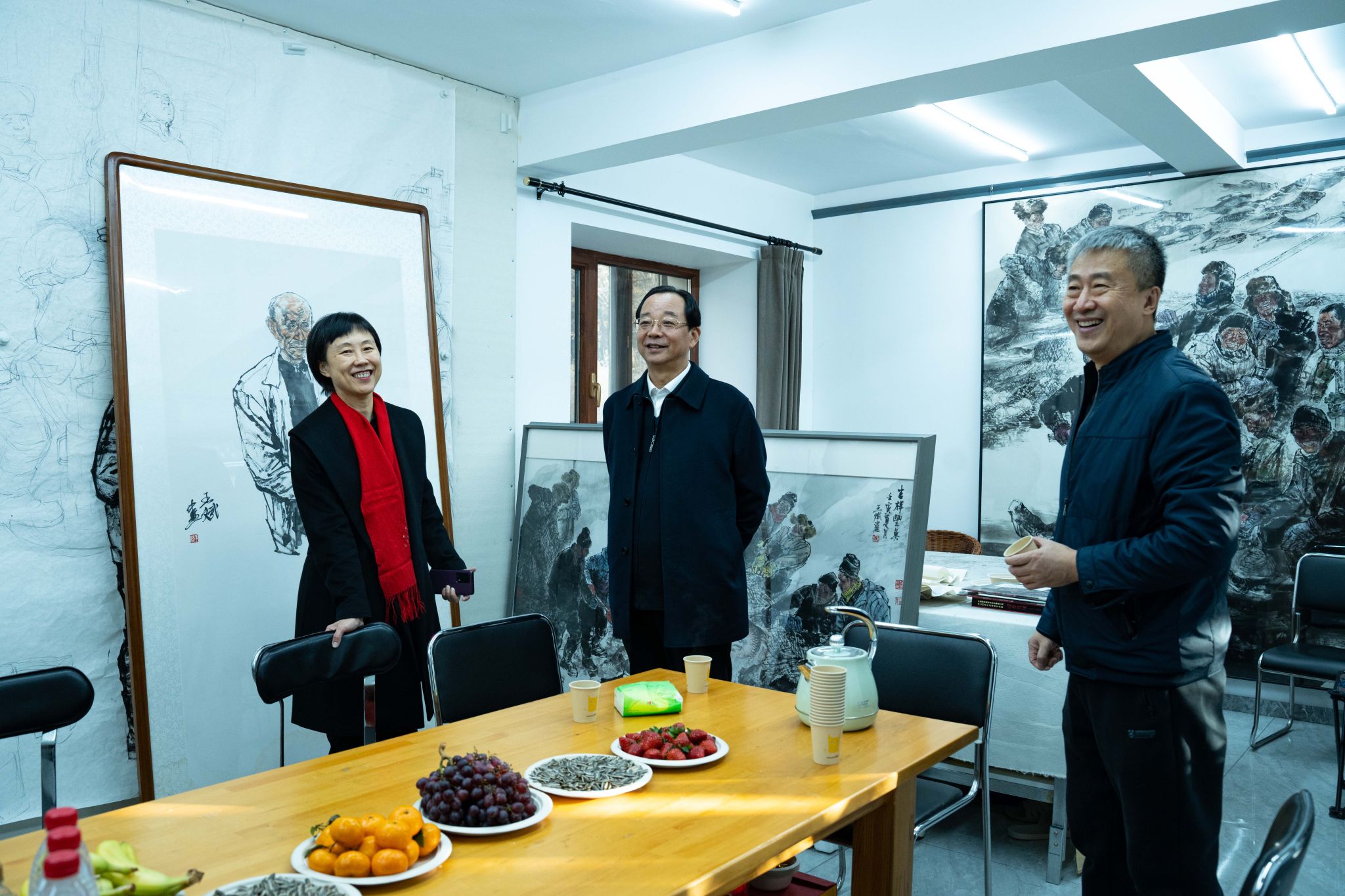 会前,来自全市各行业的留学人员代表参观了我校艺术实验中心和民盟盟员王斌教授工作室。