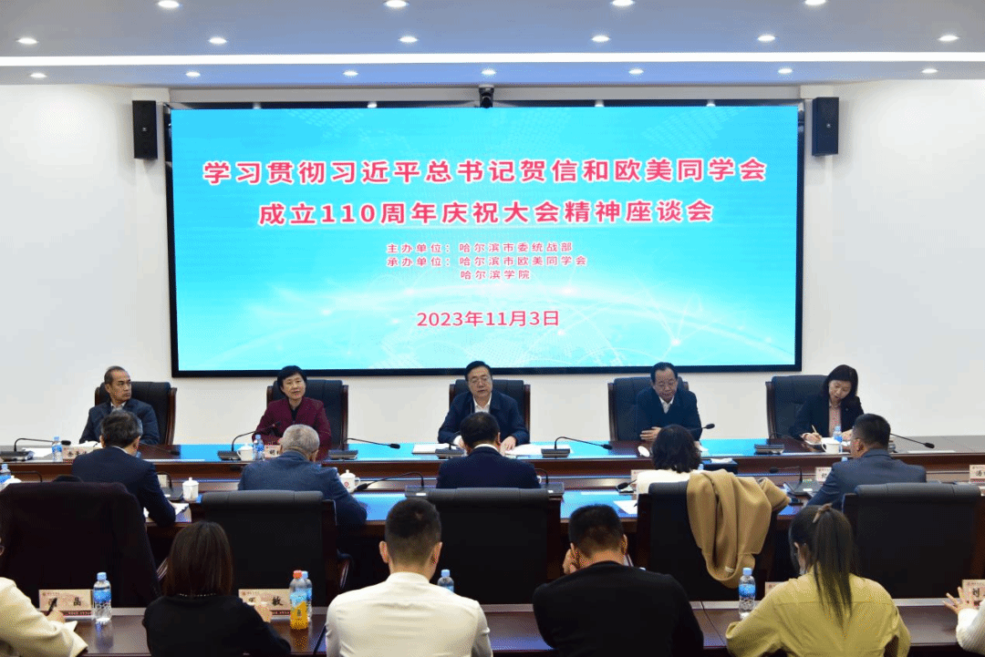 (文/贾春雷)11月3日下午,由哈尔滨市委统战部主办的“学习贯彻习近平总书记贺信和欧美同学会成立110周年庆祝大会精神座谈会”在我校举行。市委常委、统战部部长孙永文出席会议并讲话。市政协副主席、九三学社哈尔滨市委主委胡宝忠出席会议。全市留学人员代表50余人参加会议,座谈会由市委统战部副部长胡松涛主持。