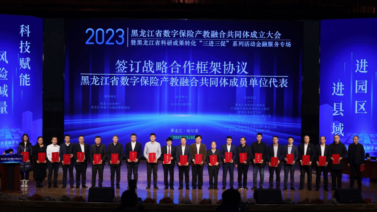 会前,各方代表审议并通过《黑龙江省数字保险产教融合共同体章程》,审议并通过共同体理事长、副理事长、常务理事名单、秘书处成员名单。会上,二十二家共同体成员单位代表共同签署《黑龙江省数字保险产教融合共同体战略合作框架协议书》;省教育厅、省保险行业协会、省金融控股集团有限公司、省内高校等单位相关负责人共同启动“数字保险产教融合共同体”。行业卫星智慧定损产品同时发布。会后,与会专家围绕“数字保险如何助力农业发展”等主题进行了精彩的专题报告。