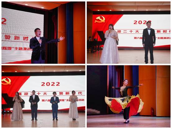 本届演讲比赛历时一个月,得到了各二级学院党委(党总支)的大力支持,特别是马克思主义学院党总支书记、院长孙芳,利用课余时间对进入决赛的所有选手进行了全面指导。决赛中,12支代表队以昂扬奋进的精神风貌,突出“喜迎二十大、礼赞新时代”的主题,借助丰富的数字媒体,回顾了新时代党和国家事业取得的历史性成就,重温了国家各领域榜样先驱的高尚情操和丰功伟绩,展现了党建引领下各学院人才培养、科学研究、文化传承创新、服务社会、国际交流合作主动融入国家省市发展大局,推动学校高质量发展的举措与成效。学生党员和入党积极分子在各学院党员教师悉心指导下,立足专业特色,以精美的图文、激昂的演讲,精彩的创意设计,动情地讲述先驱楷模平凡而伟大的人生经历,演绎了新时代青年成长、奋斗的感人故事,为全校师生在喜迎党的二十大的浓厚氛围中奉上了一场精彩纷呈的视听盛会,进一步激发了全校师生坚定理想信念、勇担时代重任、积极开拓进取的决心和勇气。