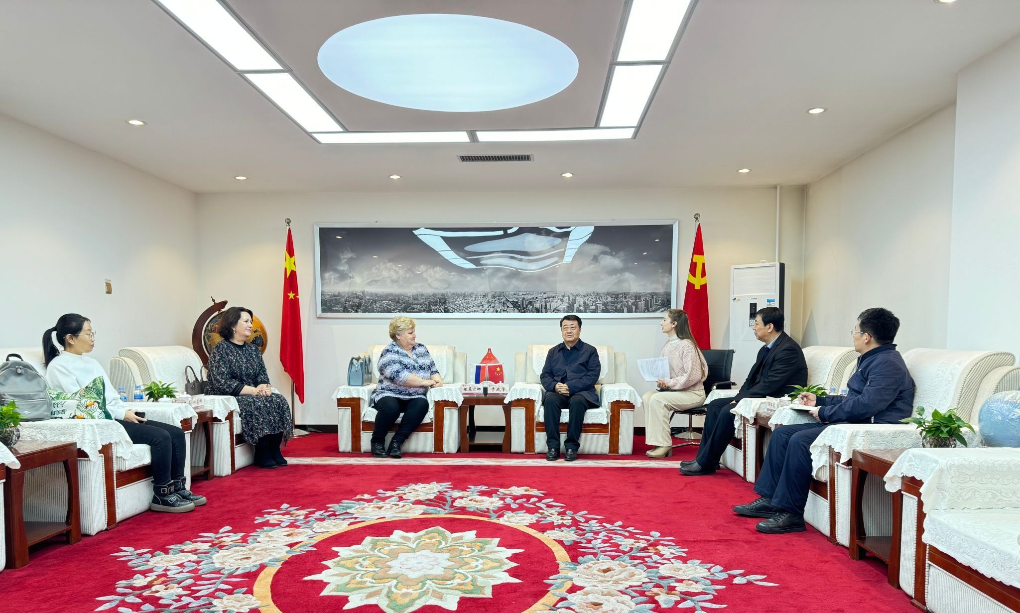 (文/沈剑锋)11月28日,俄罗斯布拉戈维申斯克国立师范大学预科学院院长塔基亚娜一行来校交流访问,校长、党委副书记于成学,副校长孙红镱热情接待,双方就推动语言实践活动、硕士联合培养、共建学科专业实验室等问题进行深入交流。