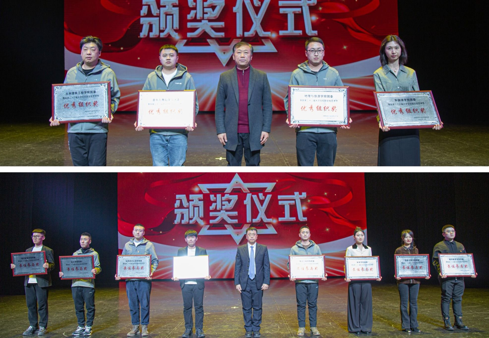 副校长于少鹏、吴旭峰分别为艺术节优秀组织奖、最佳参与奖获奖单位颁奖