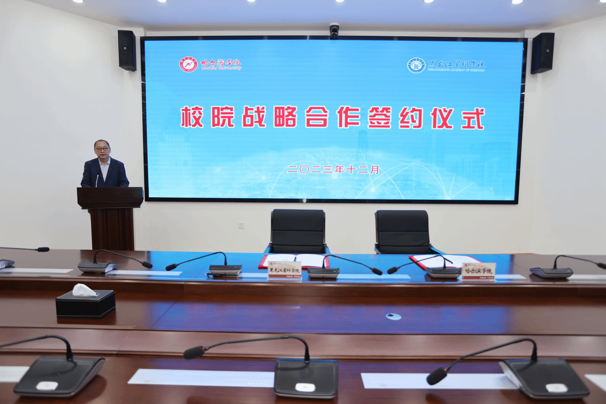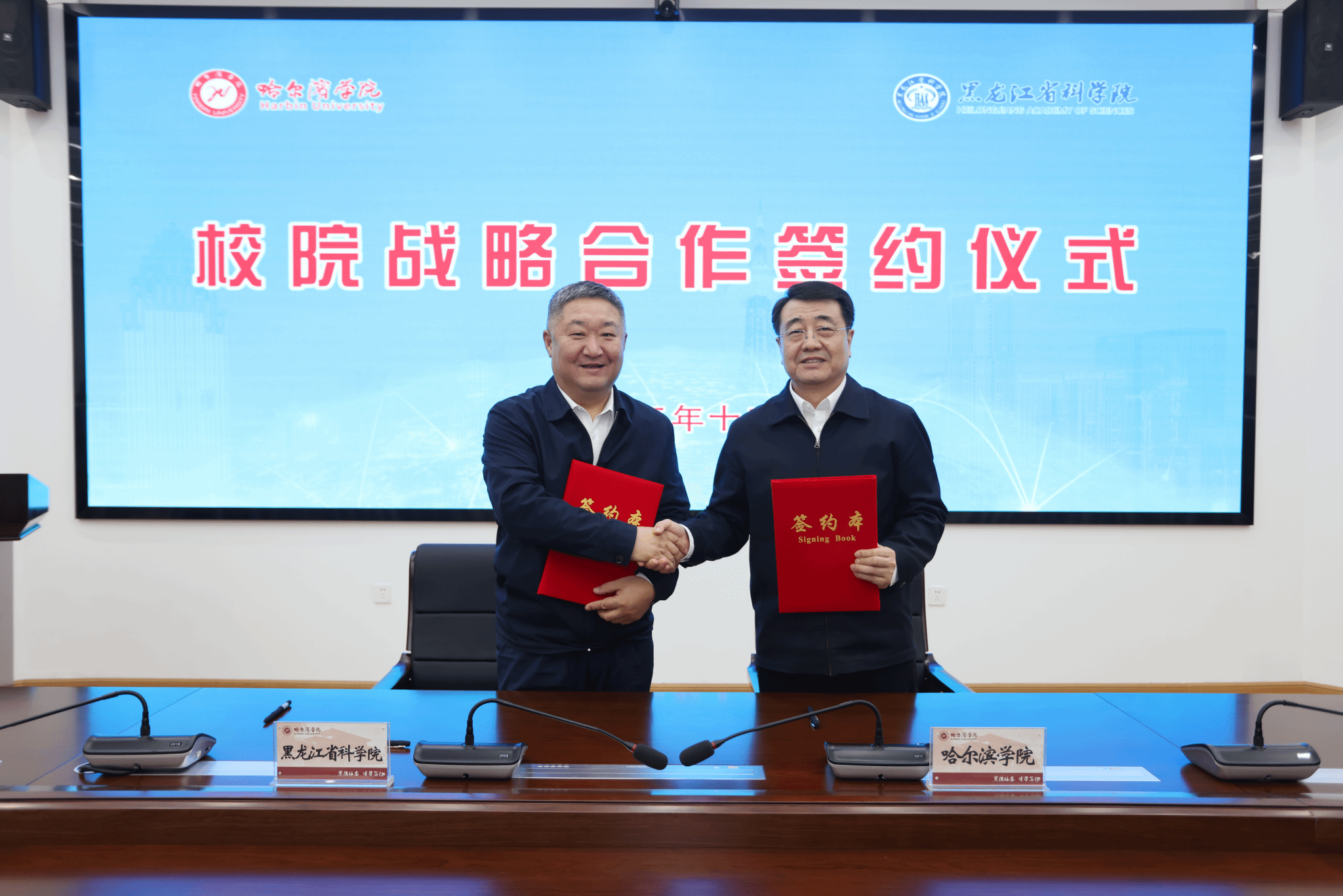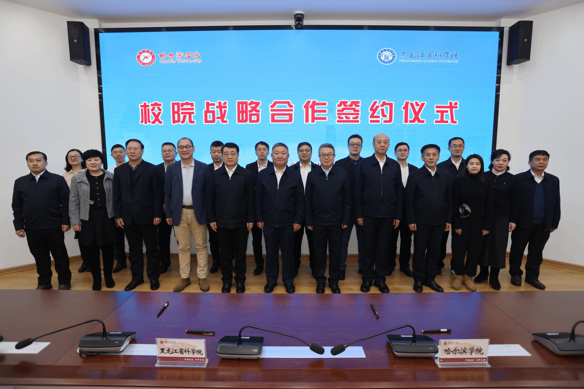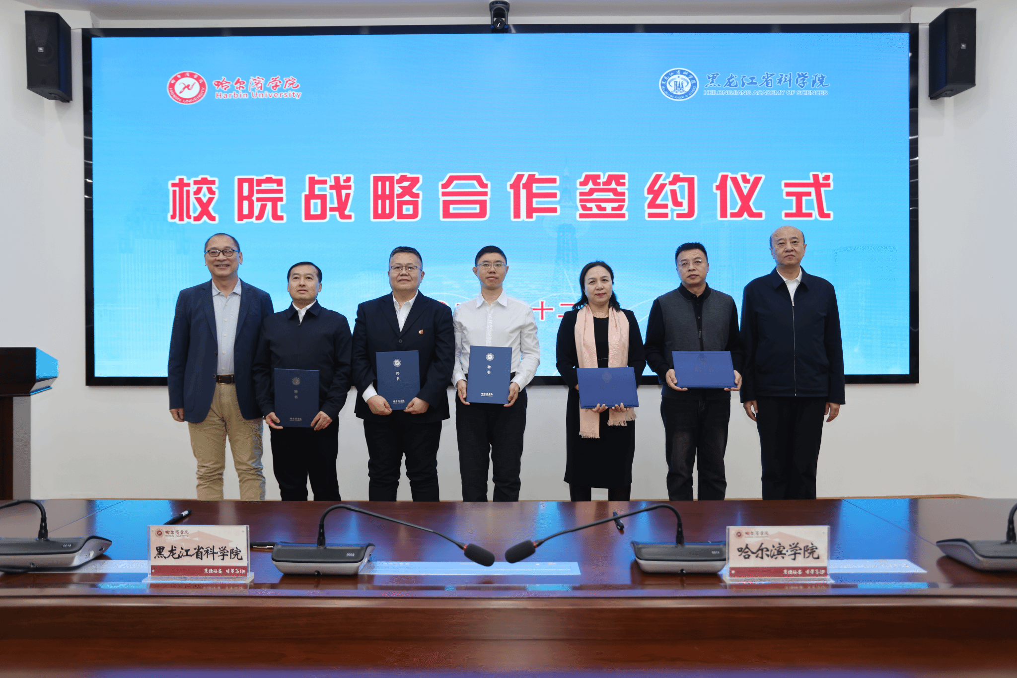 (文/屈岩峰)12月26日下午,哈尔滨学院、黑龙江省科学院校院战略合作签约揭牌仪式在党政办公楼404会议室举行。校党委书记苍松,校长、党委副书记于成学,黑龙江省科学院党组书记、院长刘春燕,副院长谢大纲出席仪式。签约揭牌仪式由副校长宋国利主持。