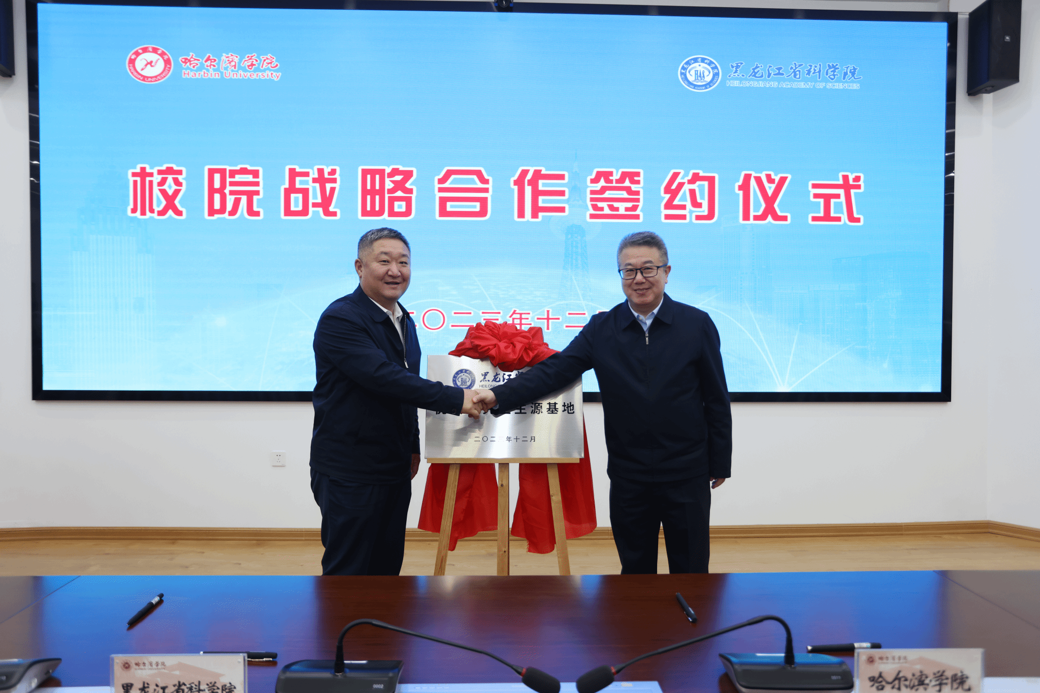 会上,于成学与刘春燕代表校院双方签署了《哈尔滨学院与黑龙江省科学院战略合作框架协议书》;宋国利与谢大纲为双方教师代表分别颁发了“哈尔滨学院客座教授”聘书、“黑龙江省科学院兼职(客座)教授”聘书;于成学与谢大纲为“哈尔滨学院实践教学基地”揭牌;苍松与刘春燕为“黑龙江省科学院优质研究生生源基地”揭牌。