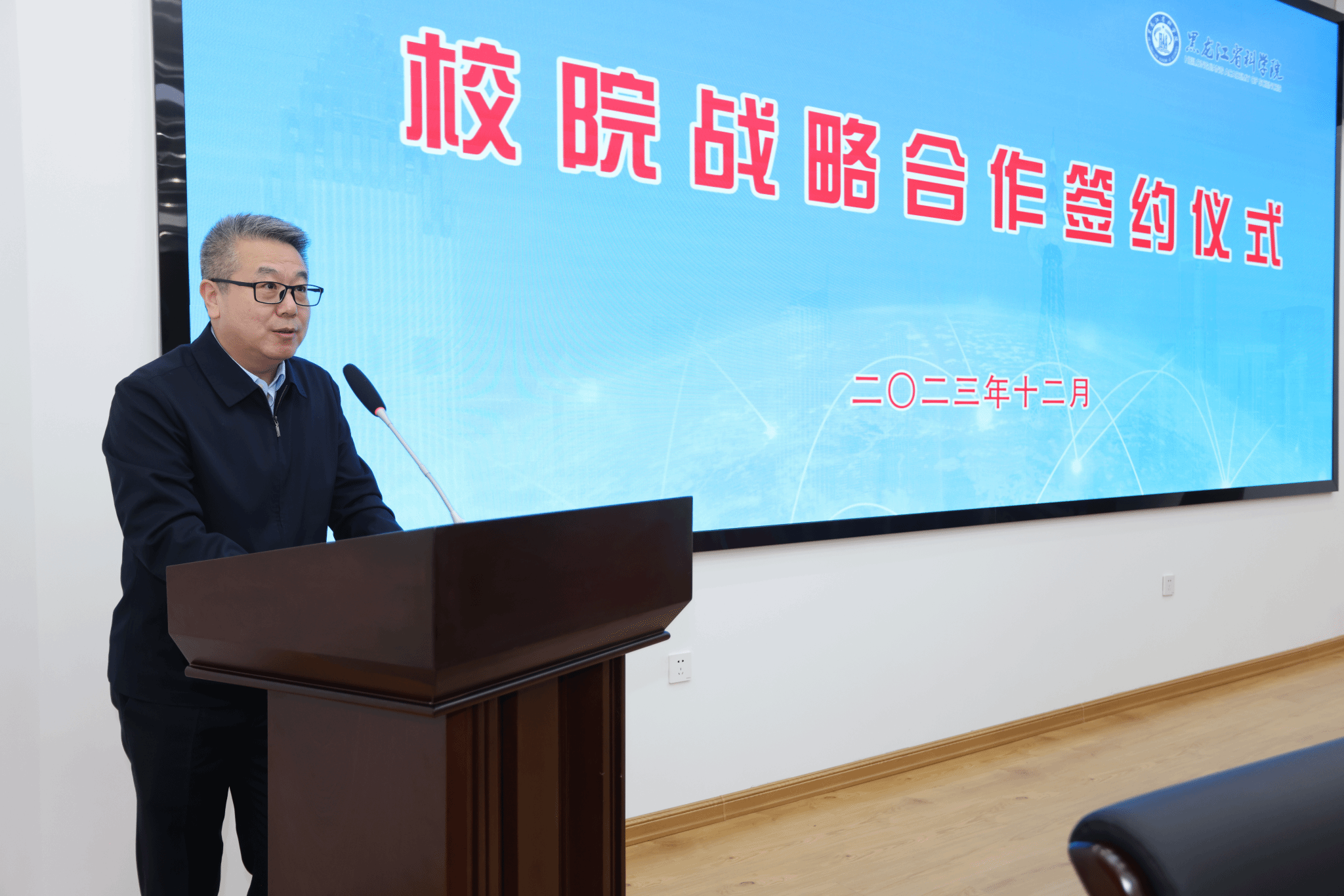 苍松对刘春燕一行表示热烈欢迎,他指出,12月26日,是伟大领袖毛泽东同志诞辰130周年,在这个特殊日子,签署哈尔滨学院与省科学院校院战略合作协议,意义非凡。“十四五”以来,哈尔滨学院坚持“地方性、应用型、开放式”办学定位,深化产教融合,推动校企、校政、校院、校校合作,构建产学研用协同育人机制,主动服务区域经济社会发展,加快建设城校融合、特色突出、开放应用的高水平应用型大学,在寒区地下工程材料研制、智能软件技术研究、食品微生物产品研发、寒区湿地生态修复保护等领域取得了一系列标志性成果。与此同时,作为省政府直属的综合性自然科学研究机构,省科学院在能源环境、石油化工、智能制造、功能性食品、微生物技术等领域有着突出的科研优势。校院双方互学互鉴、互补互促、相融相助,为建立更加稳定的战略合作伙伴关系奠定了坚实基础。希望双方依托彼此优势资源,通过双向赋能,打造合作新模式,在生物技术、信息技术、食品科学等领域继续深化合作,共同推进校院协同发展,为服务省市战略,助力龙江、哈尔滨现代化建设作出新的更大贡献。