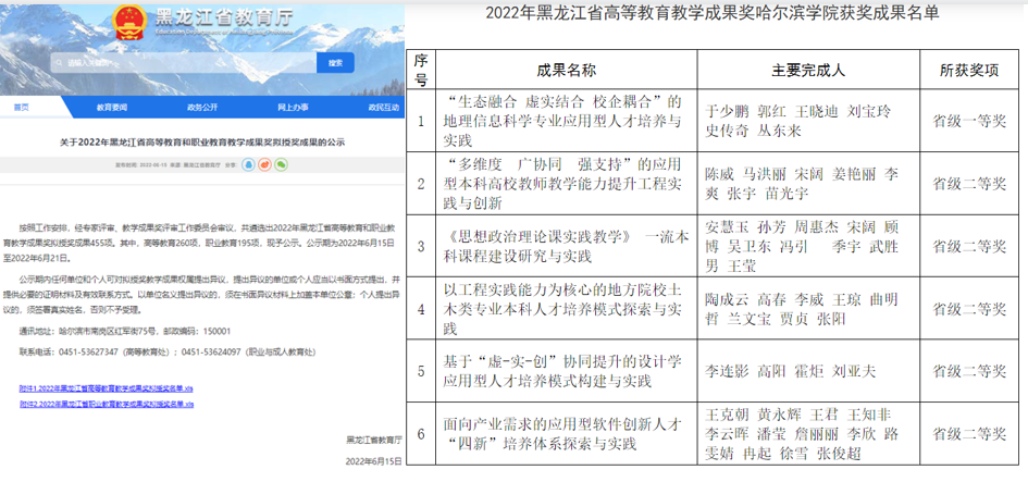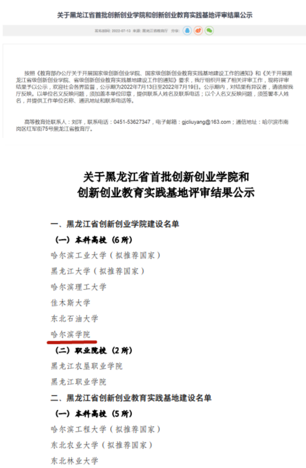7月27日,学校在第八届中国国际“互联网+”大学生创新创业大赛黑龙江省赛区总决赛荣获金奖8项、银奖13项、铜奖35项,金奖数量创历史新高、排名位于全省本科高校第8位。学校创建“3316”创新创业教育体系,入选黑龙江省首批“创新创业学院”建设名单,在2022年度“黑龙江省大学生创新创业训练计划项目立项”获批国家级项目16项、省级项目59项,其中《面向可穿戴智能设备柔性超级电容器的设计及应用效果研究》获批国家级重点支持领域项目,系我校在该领域中获批的最高立项。此外,在团省委等5部门举办的第十三届“挑战杯”黑龙江省大学生创业计划竞赛中,学校斩获3金5银5铜,创造历史最好成绩。