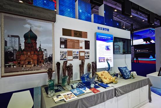 在哈尔滨展团哈尔滨学院展区,哈尔滨学院时尚创意设计产业学院首次代表驻哈高校,以冰雪时尚创意设计为主题参加被誉之为“中国文化产业第一展”的深圳文博会。重点突出了冰雪琉璃、冰雪陶瓷、冰雪服装、冰雪蓝染和冰雪书画等方面的创作,为打造哈尔滨创意设计之都、冰雪文化名城注入了新的力量。