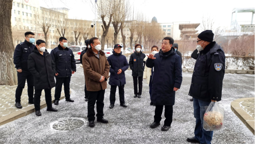 于成学校长一行先后来到后勤综合保障服务中心、变电所、生活用水水源地、主校区门卫、保卫处和政务值班室等重点部位,详细询问各项工作运转情况。每到一处,学校领导与工作人员一一握手,亲切交谈,并送上慰问品和新春的祝福与问候。
