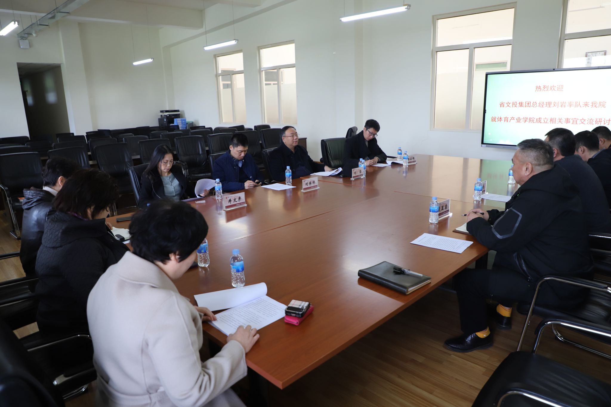 刘岩翔实介绍了省文投集团职能、集团发展情况。他说,一直以来,省文投集团致力于拓展与地方高校的合作,促进学科专业优势转化为产业优势。哈尔滨学院具有丰富的学科专业资源和良好的科研创新平台,必将为黑龙江省产业发展提供有力支撑。文投集团拥有丰富的文旅资源,期待与哈尔滨学院共同打造智慧体育、品牌营销、创意设计包装等龙江特色产品,助力龙江发展,促进新质生产力形成。他希望,以与体育学院共建产业学院为抓手,面向区域发展,校企进行全方位合作,将加大创新成果转化应用,具有现实战略意义。