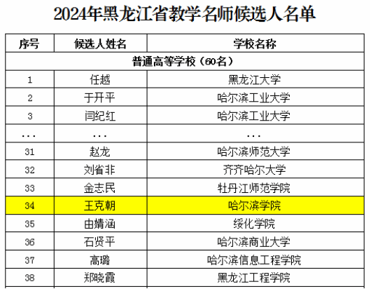 (文/马彦龙)近日,黑龙江省教育厅发布了《关于2024年黑龙江省教学名师遴选结果的公示》,我校王克朝教授荣获2024年黑龙江省高等学校教学名师称号。