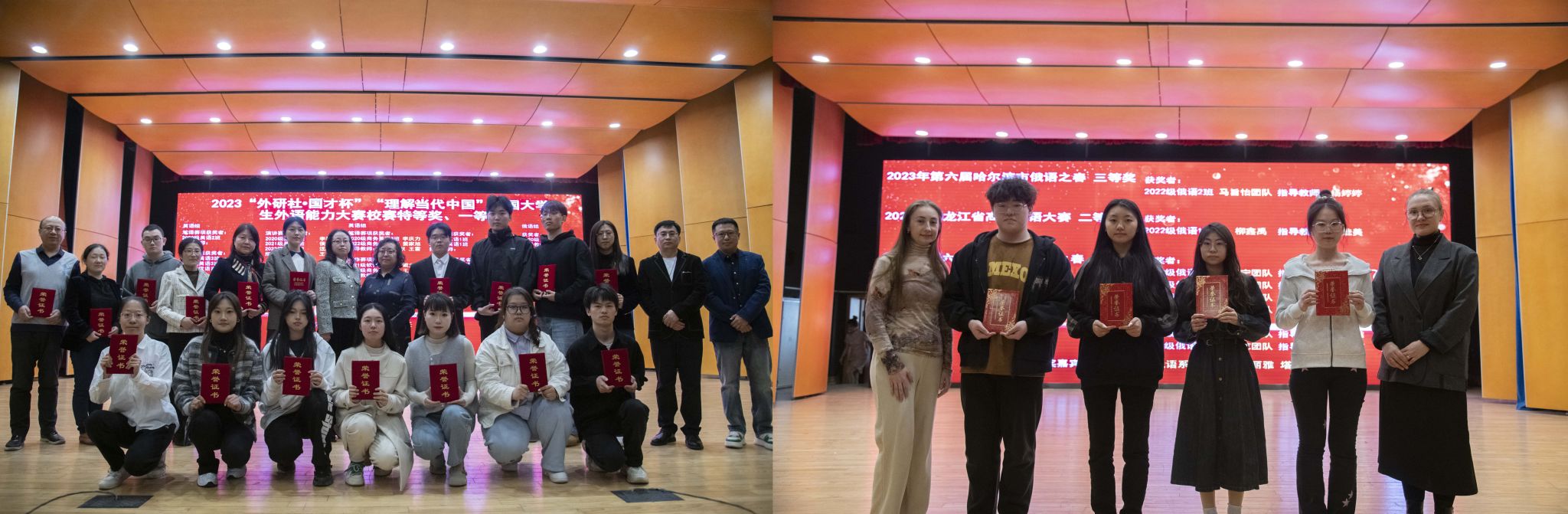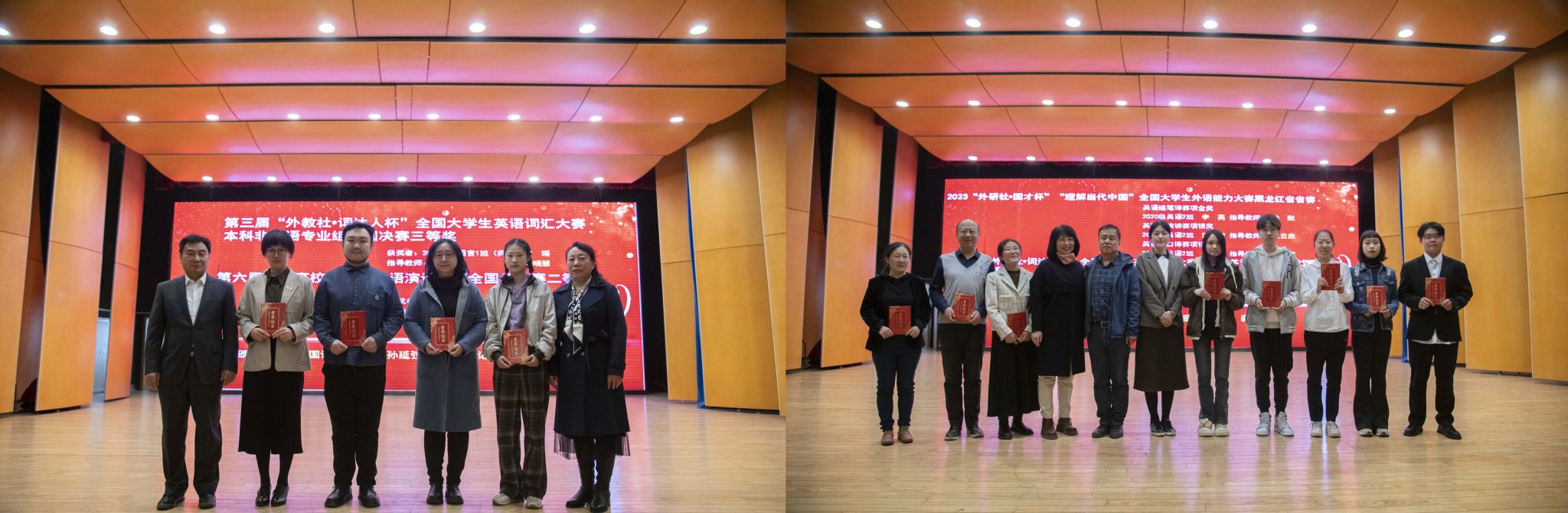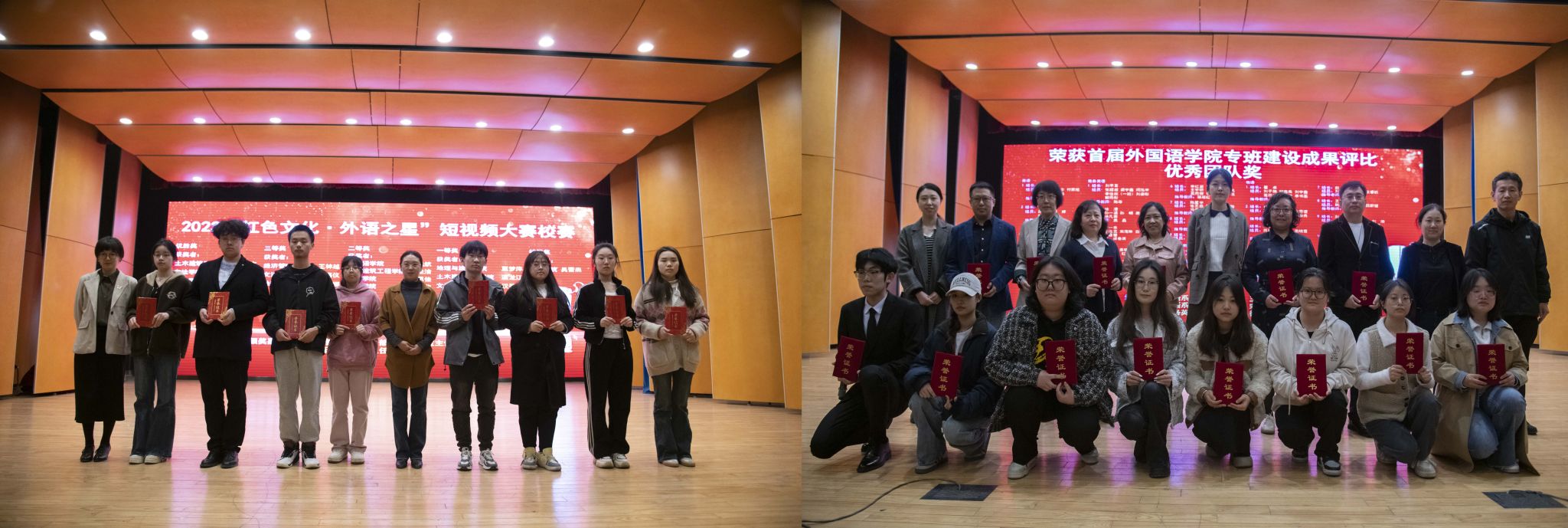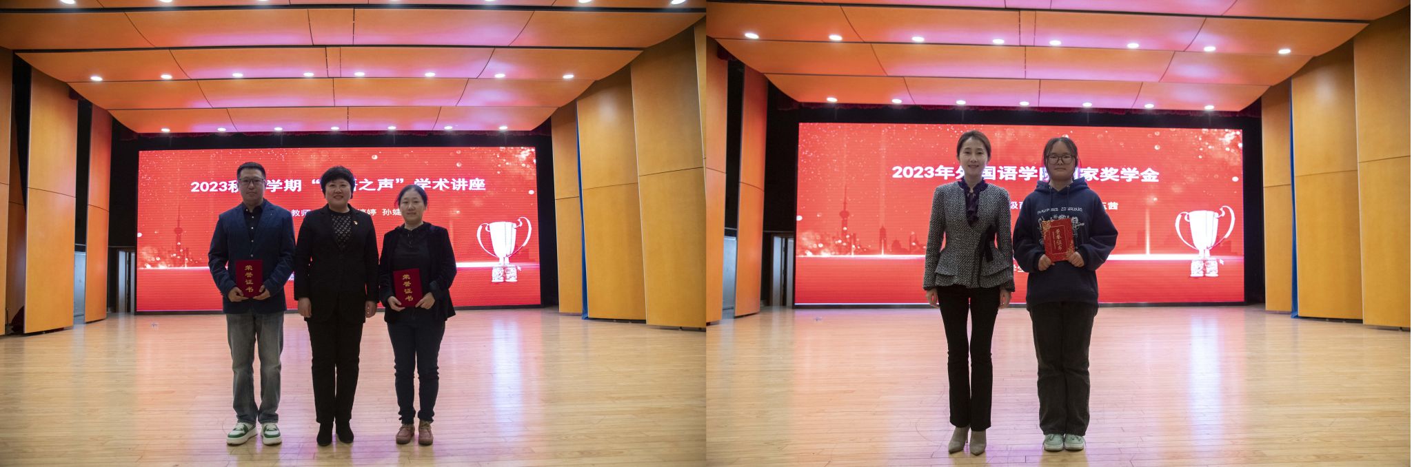 与会校领导及嘉宾分别为省级三好学生、国家奖学金获得者、全国高师学生英语教师职业技能大赛、“外研社·国才杯”“理解当代中国”全国大学生外语能力大赛等10项学科竞赛获奖者、全国外语专业等级考试成绩优秀者、研学专班优秀团队、中美笔友志愿者项目参与师生、“外语之声”学术讲座教师等集体和个人颁奖。