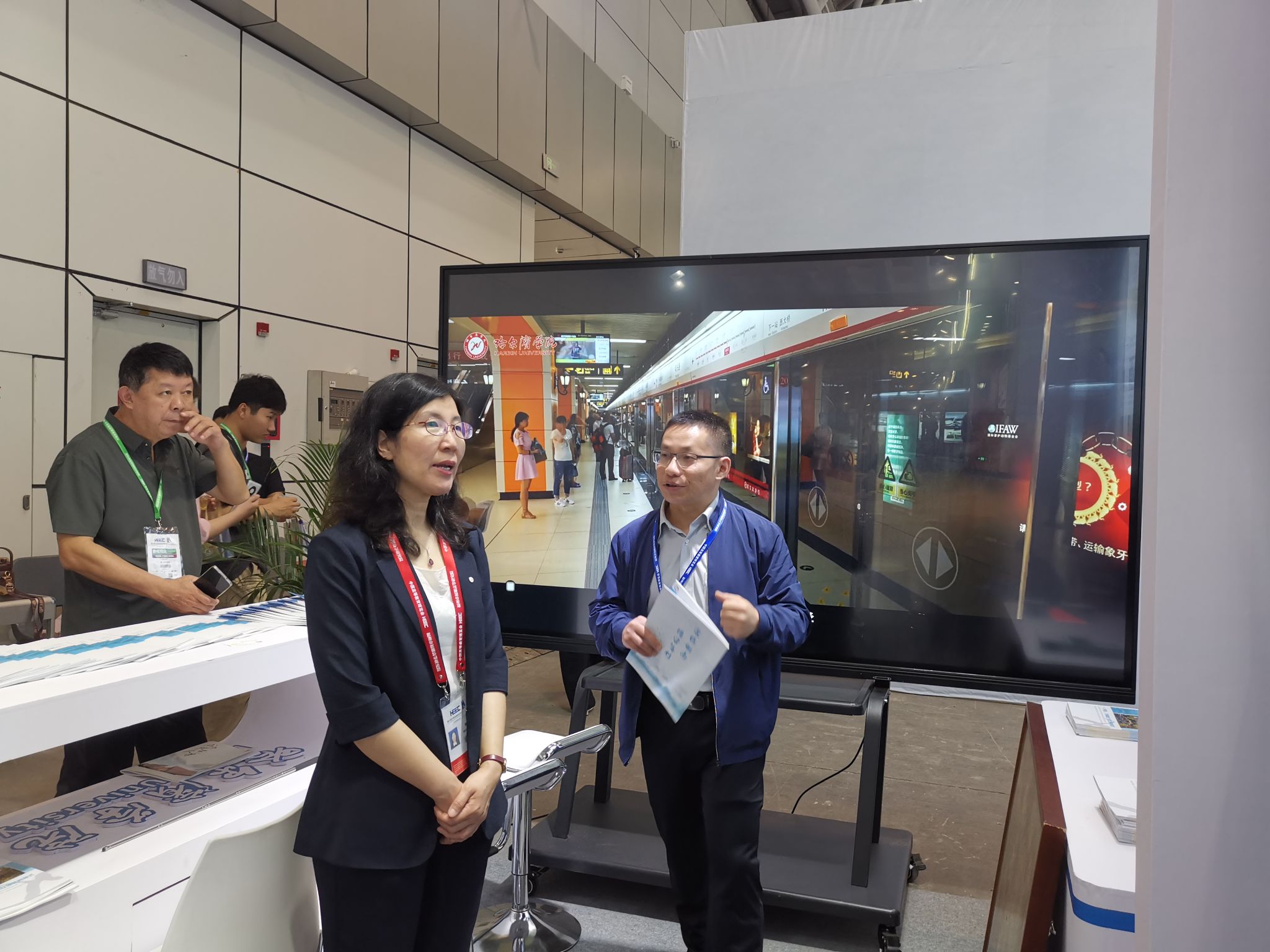 参展人员向社会各界推介学校双创教育、科技转化成果