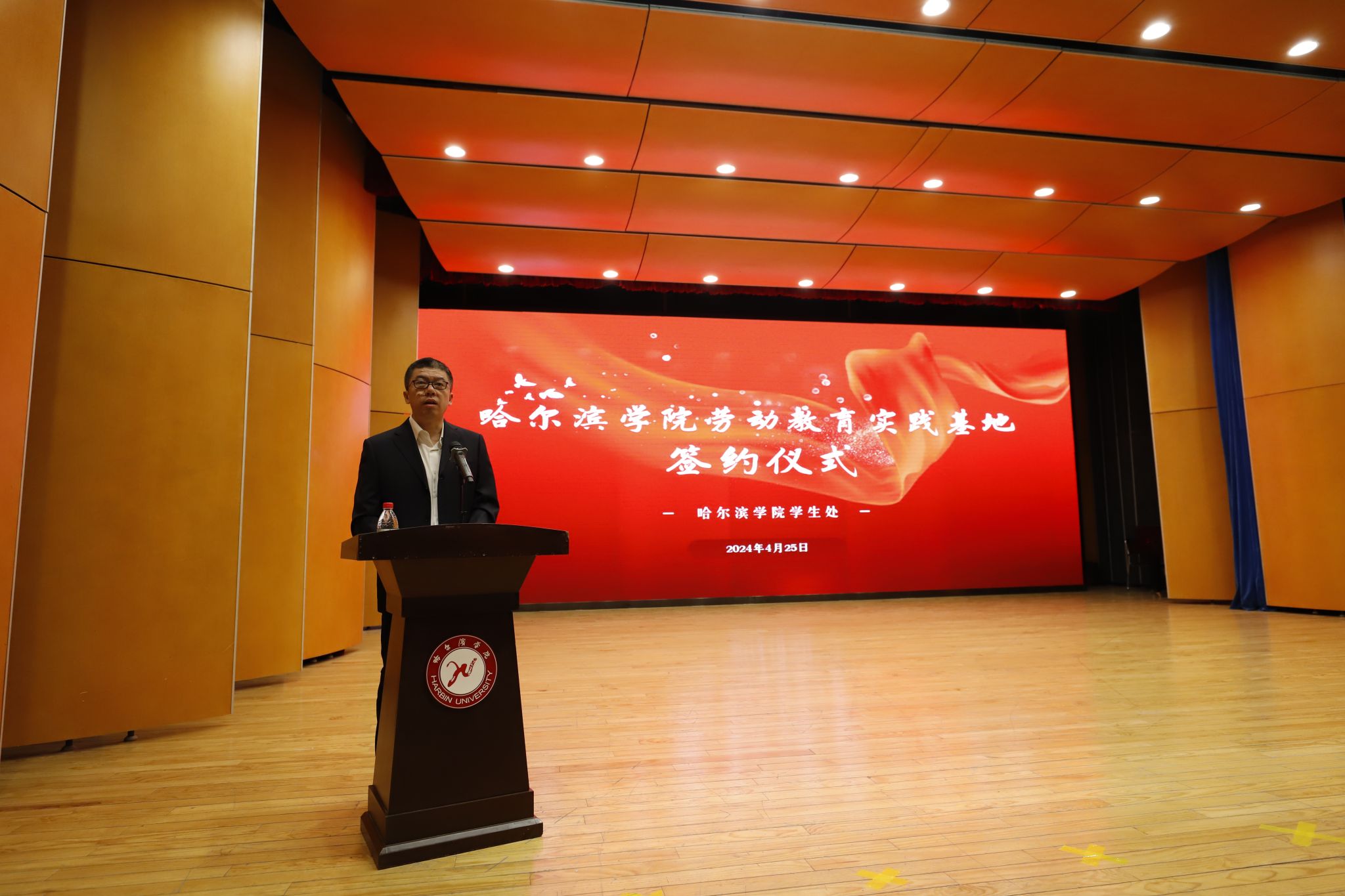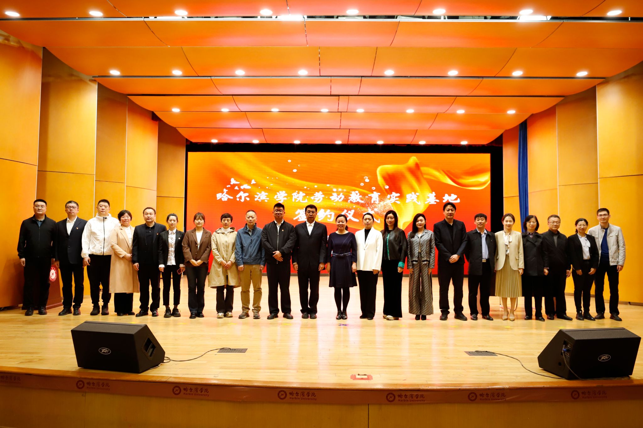 (文/卢涛)为贯彻落实中共中央、国务院《关于全面加强新时代大中小学劳动教育的意见》,加强“校、政、企、社”合作交流,构建“资源共享、优势互补、人才共育”劳动教育工作格局,4月25日,学校在音乐厅举办“哈尔滨学院劳动教育实践基地签约仪式”。党委副书记李娜,党委委员、副校长吴旭峰出席仪式,省委宣传部志愿服务发展中心、中国铁路哈尔滨局集团有限公司党校、双城区临江乡人民政府、道里区安静街道办事处等12家单位相关负责人,学生处、教务处、校团委、保卫处、后勤管理处、图书馆负责人,二级学院党委(党总支)书记、副书记,全体辅导员、学生代表参加仪式。仪式由学生处副处长庞哲主持。