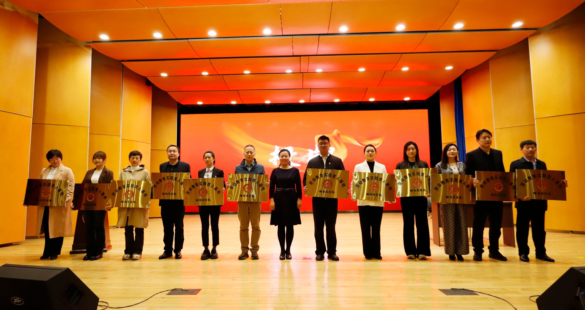 党委副书记李娜为12家单位负责人颁授“哈尔滨学院劳动教育实践育人基地”牌匾