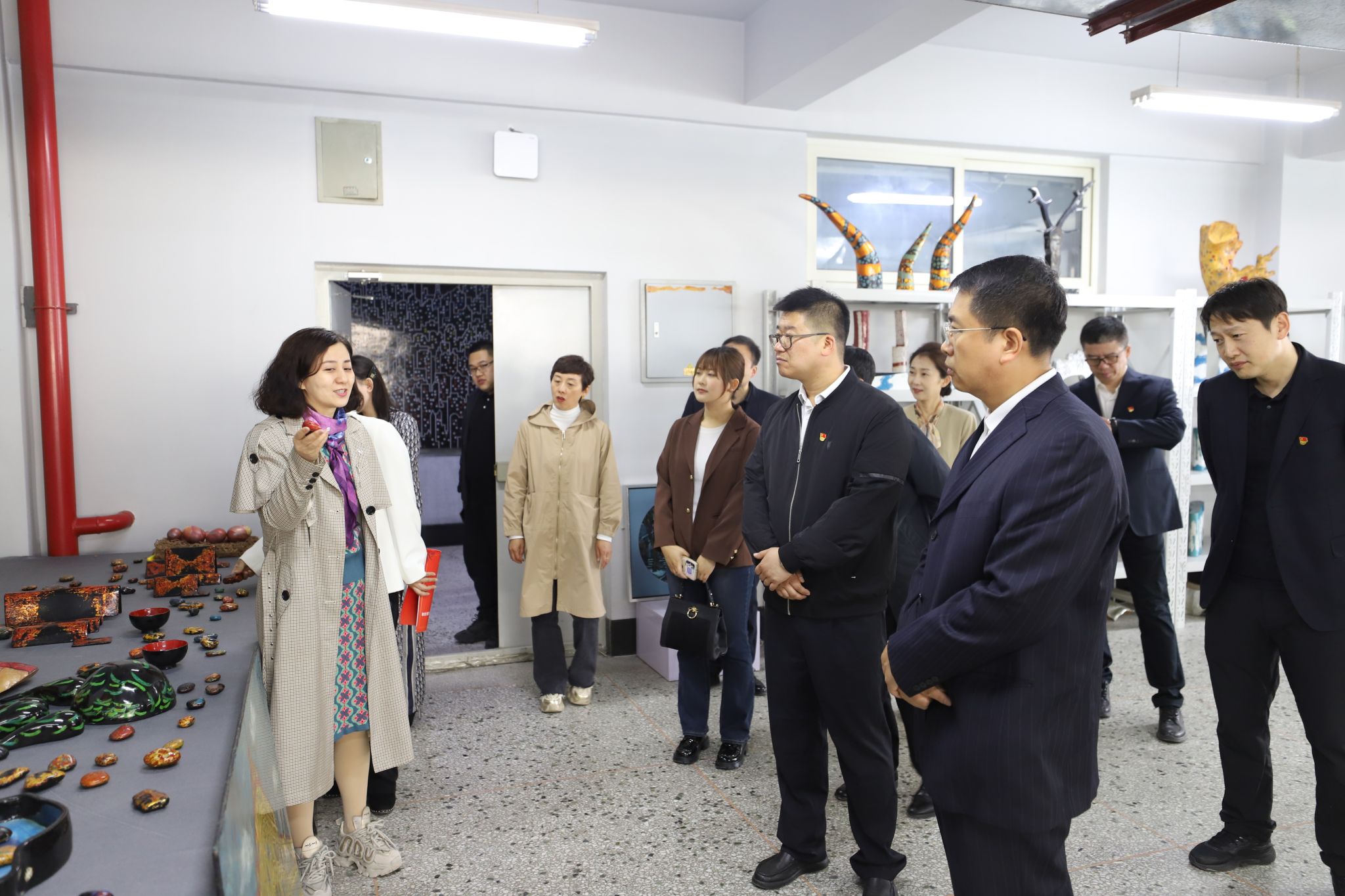 仪式后,相关单位负责人在吴旭峰的陪同下,参观了艺术实验中心、大学生心理健康中心、辅导员工作室等地。