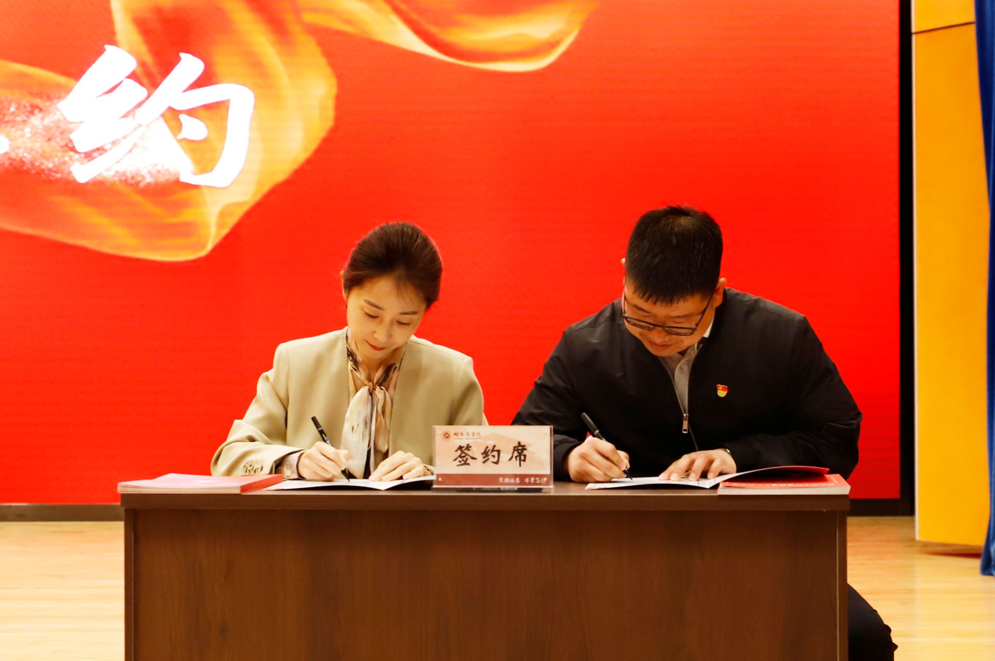 学生处处长于迪与相关单位代表签订《哈尔滨学院劳动教育实践基地签约书》