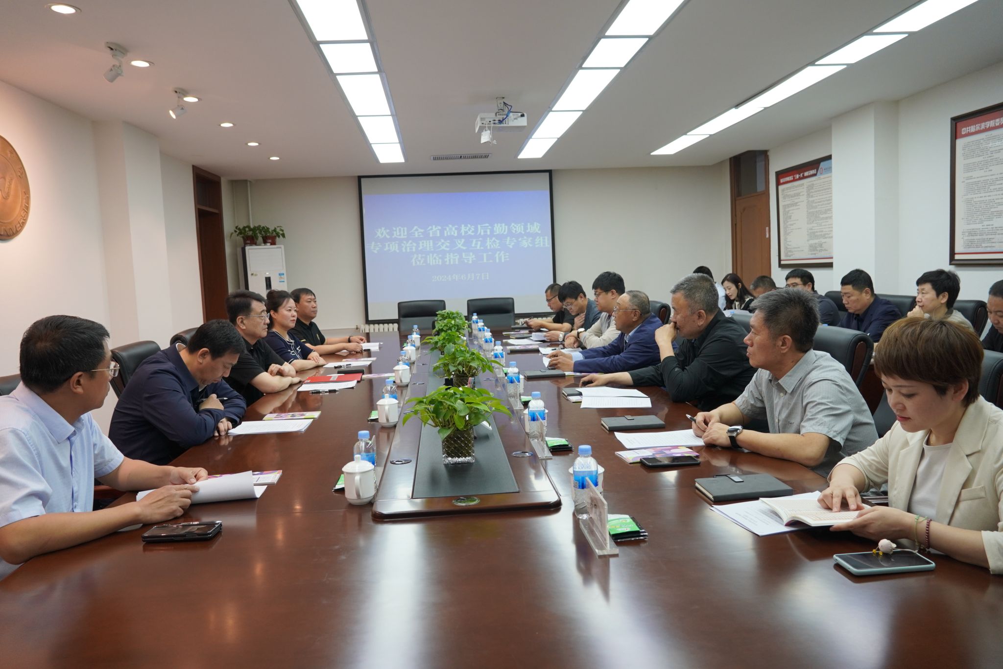 (文/杜帅)近日,省教育厅发展规划处副处长李向东,哈尔滨工业大学总务处处长、后勤集团总经理刘伟带领高校后勤领域专项治理交叉互检检查组来校检查指导工作。校长、党委副书记于成学,党委副书记李娜,副校长孙红镱、于少鹏、吴旭峰参加见面会。