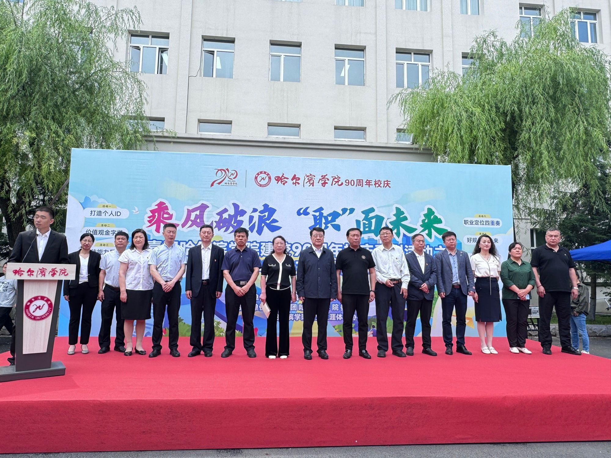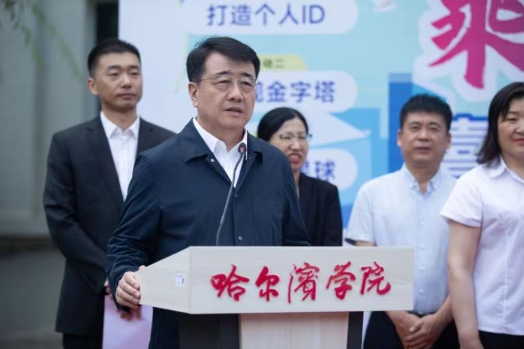 (文/徐颖欣)6月12日上午,庆祝哈尔滨学院90周年校庆系列活动之“第三届大学生就业体验周”启动仪式在一号教学楼文化广场举行。校长、党委副书记于成学出席活动并宣布活动开幕,副校长于少鹏致开幕词,各二级学院党政负责同志、辅导员、2021级学生代表,校团委、就业指导处负责人和有关人员参加活动。活动由就业指导处副处长孙阳主持。