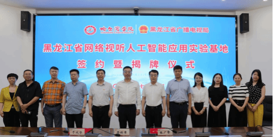 于成学、张广雷共同签署了《哈尔滨学院与黑龙江省广播电视局校政合作战略合作协议》,并为“黑龙江省网络视听人工智能应用实验基地”揭牌,孙红镱、张平为基地执行主任李尧娟、周晓燕颁发了聘任证书。