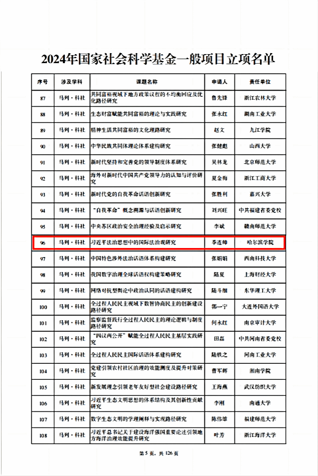 (文/王睿博)近日,我校季连帅教授获批国家社会科学基金项目《习近平法治思想中的国际法治观研究》,这是我校“十四五”以来获批的首个国家社会科学基金项目。