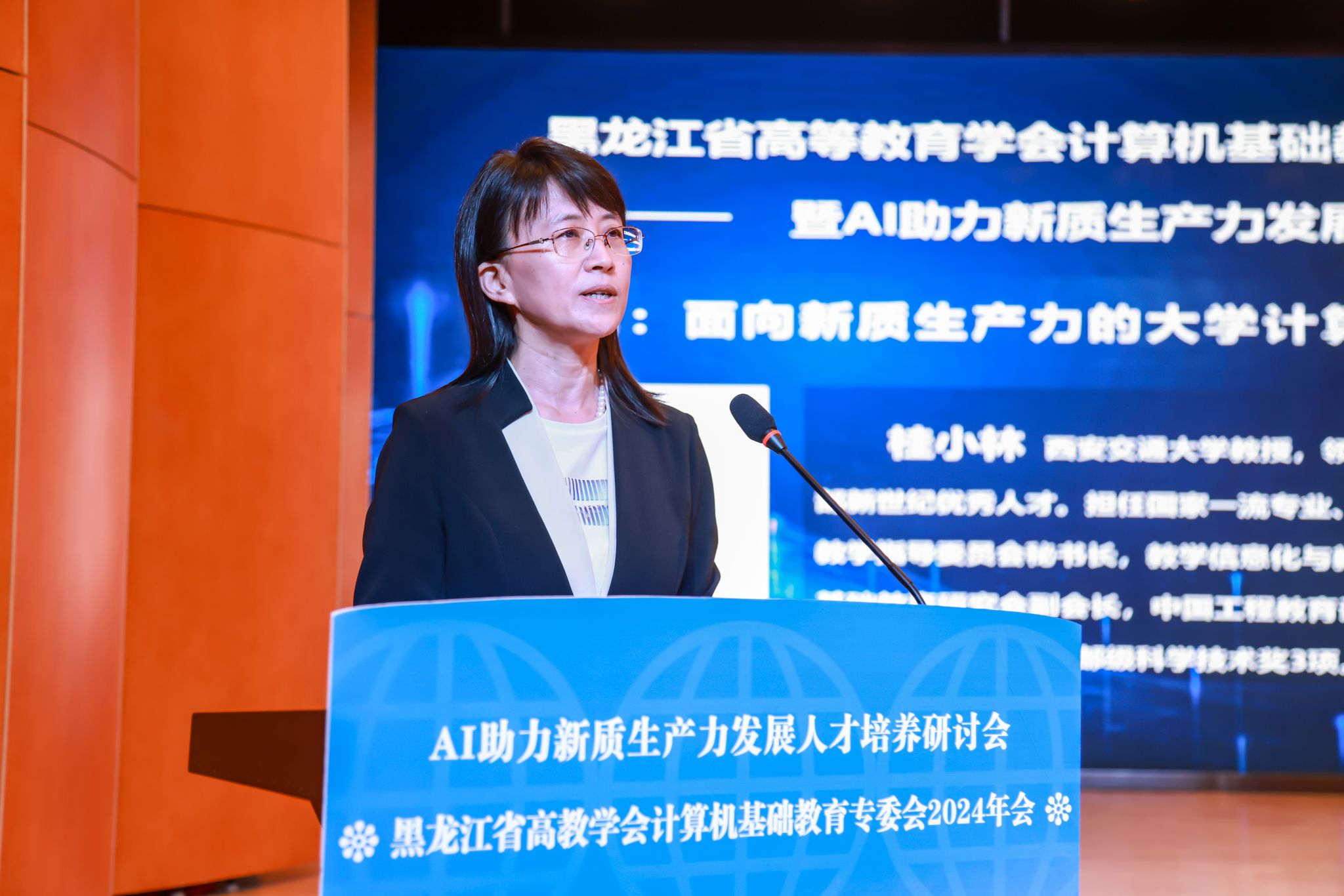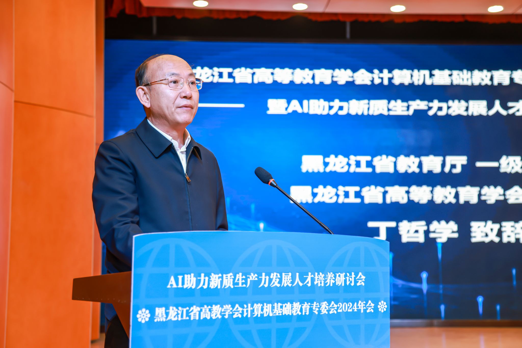 丁哲学高度肯定了近年来黑龙江省在大学计算机基础教育领域取得的成就,并指出AI技术的广泛应用为教育带来了前所未有的机遇与挑战。他殷切期望省高教学会计算机基础教育专委会不断加强顶层设计,明确发展方向,深化产教融合,强化师资队伍建设和加强AI背景下的教材建设,同时强调发挥人工智能在大学计算机基础教育中的作用,促进新质生产力的发展。