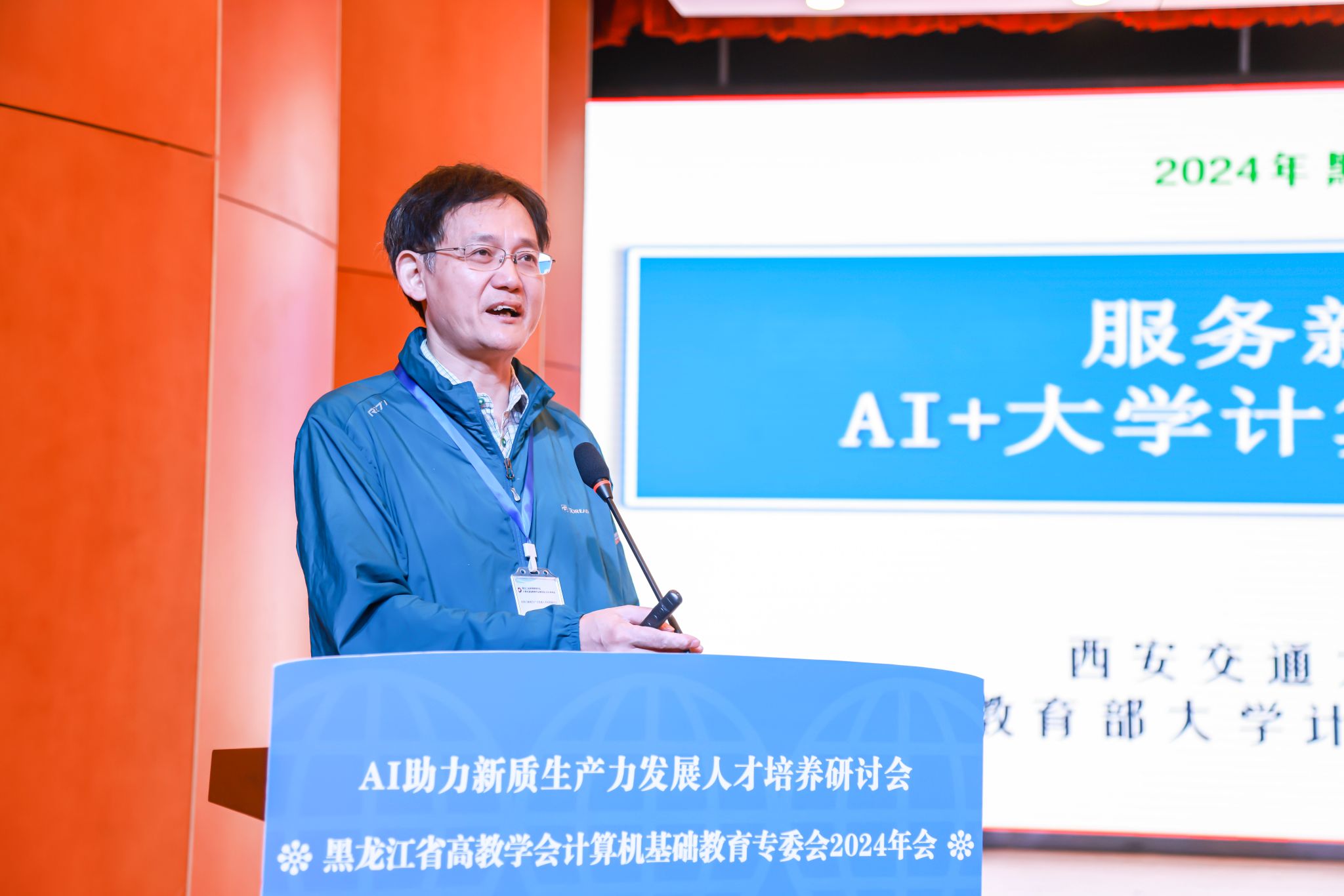 教育部大学计算机基础教学指导委员会秘书长、国家教学名师、西安交通大学的桂小林教授带来了题为《面向新质生产力的大学计算机通识教育的改革与探索》的报告。桂教授深入分析了当前大学计算机通识教育面临的挑战,提出了通过AI技术推动教育改革的思路与方向。