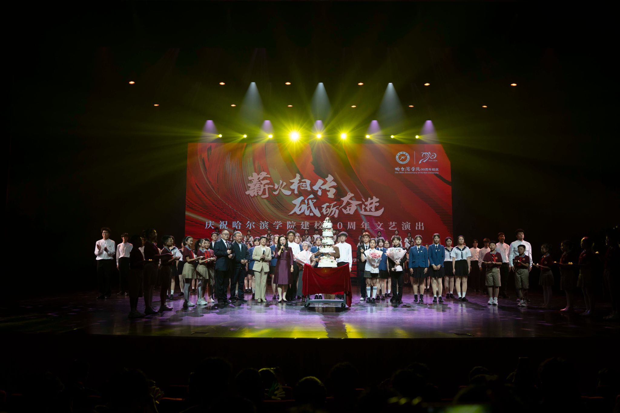 九十载薪火相传育人为本,新征程扬帆起航再创辉煌。哈尔滨学院将以建校90周年为新起点,更加紧密地团结在以习近平同志为核心的党中央周围,认真贯彻落实党的二十届三中全会精神和全国教育大会精神,加快城市特色鲜明、区域一流应用的高水平大学建设步伐,笃行不怠传薪火、砥砺奋进新征程,为全面推进中国式现代化强国建设、民族复兴伟业不懈奋斗!
