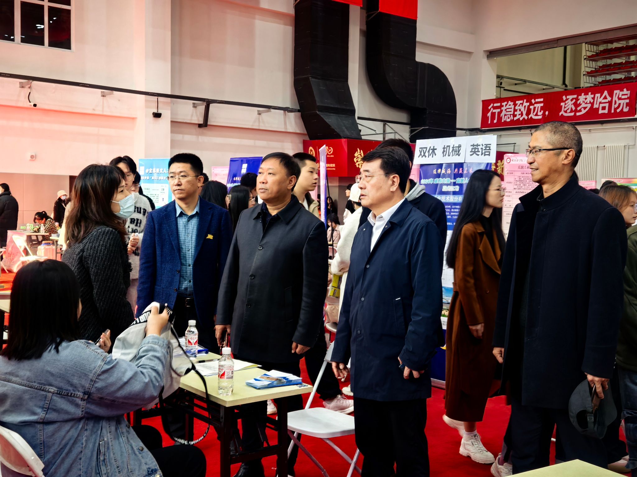 活动现场,于成学与参展单位代表深入交流,他感谢用人单位长期以来对学校的关心和支持,并详细了解参加招聘会的企业情况、提供就业岗位数量和就业专业要求等。同时,他与应聘学生亲切交流,希望广大毕业生能够珍惜这次校企人才供需见面机会,明晰就业形势,合理调整就业期望,抓住“金九银十”求职黄金期,早日签约理想工作。
