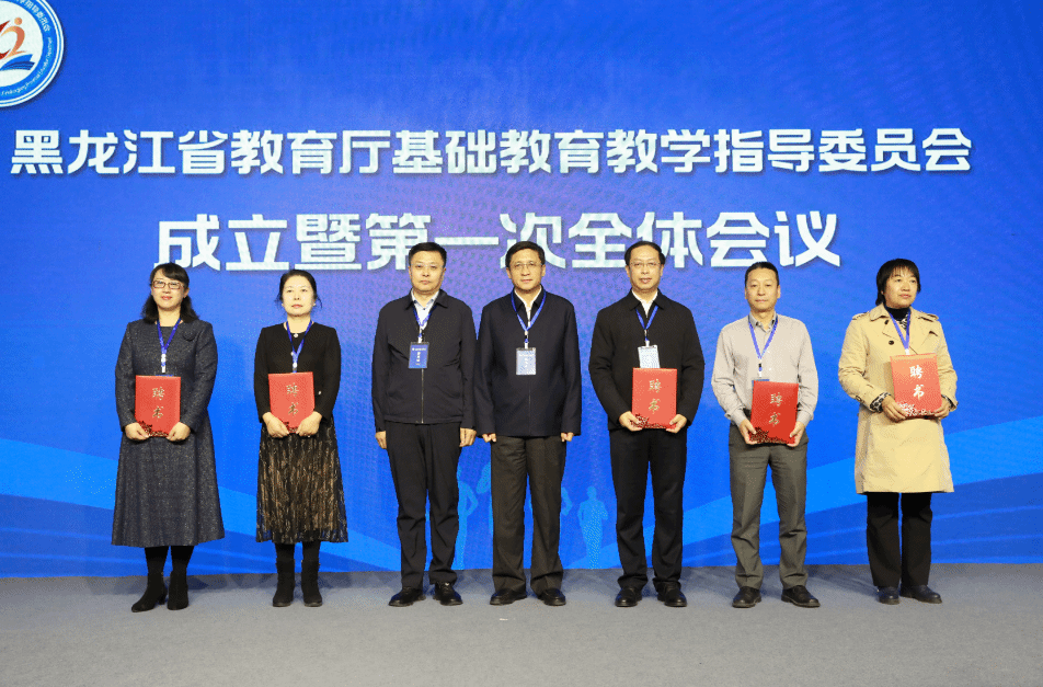 黑龙江教师发展学院院长李宝生宣读首届教指委名单。会议向首届教指委主任委员、副主任委员和委员颁发了聘书。黑龙江教师发展学院副院长、首届教指委主任委员刘德宏,哈尔滨师范大学教育科学学院院长、首届教指委副主任委员陈云奔分别发言。首届教指委各专委会委员和各地市教育行政、教研部门负责同志线上线下参加会议。
